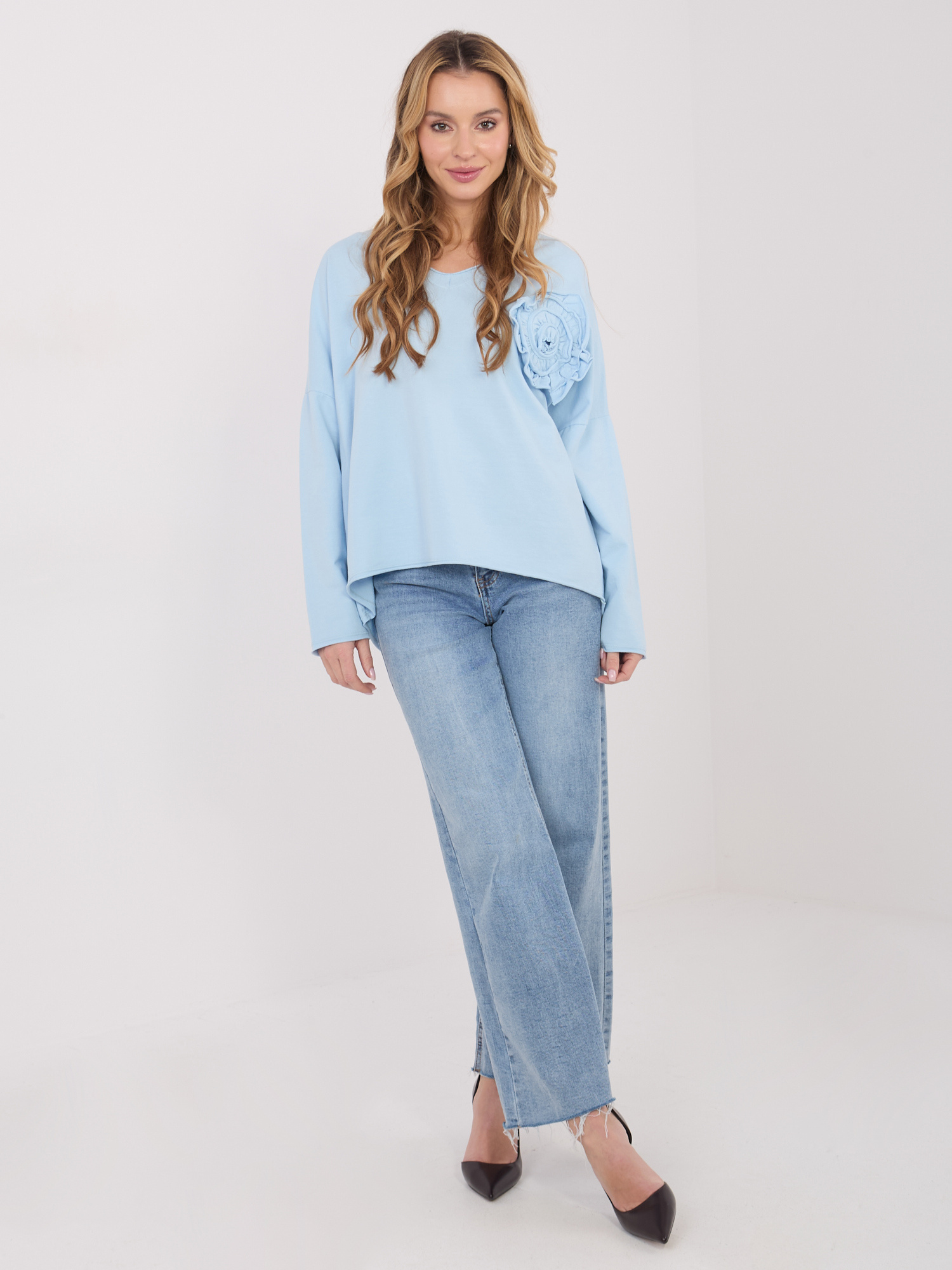 Jasnoniebieska bawełniana bluzka z dekoltem V