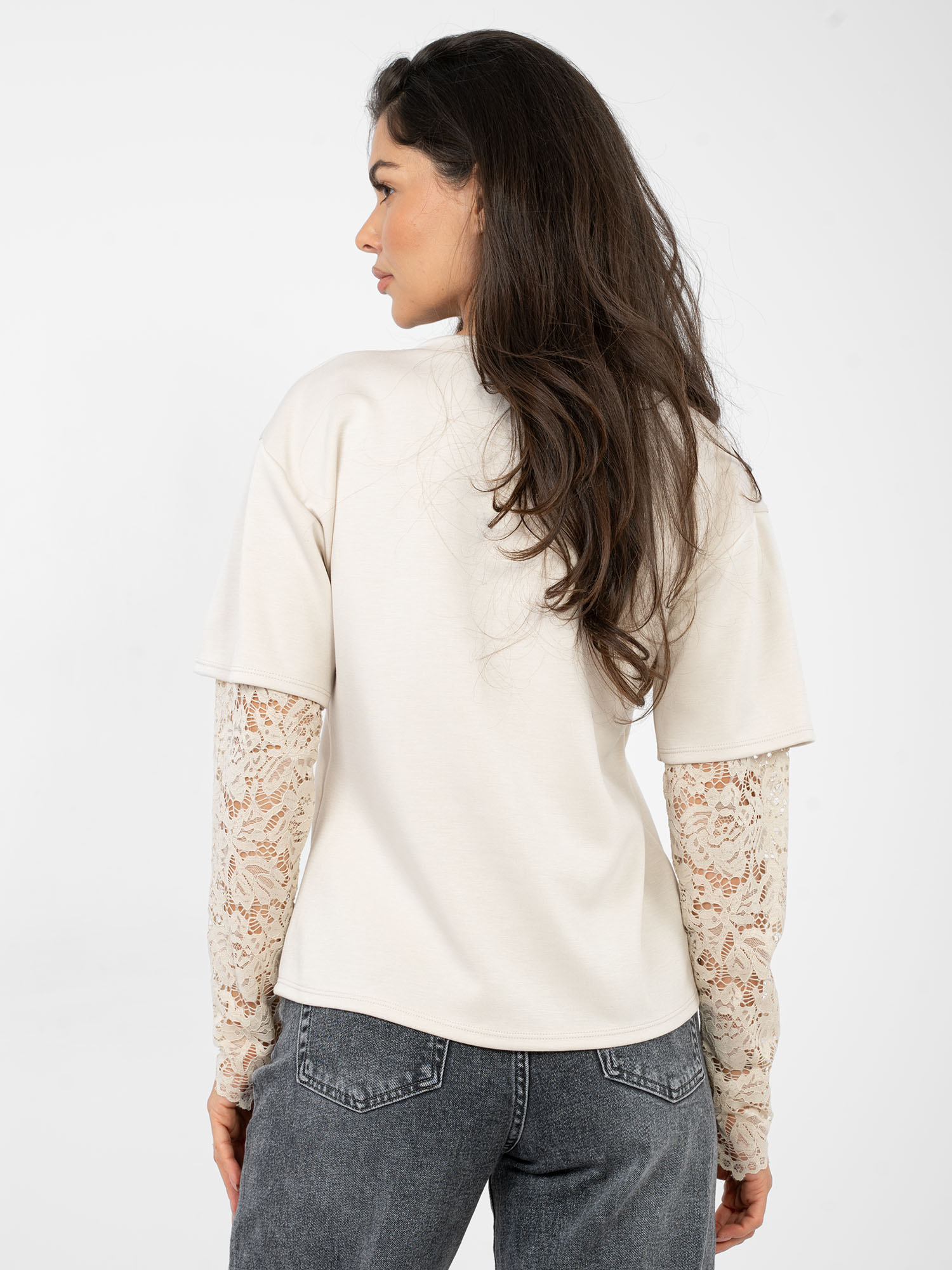 Beżowa damska bluzka z imitacją t-shirtu