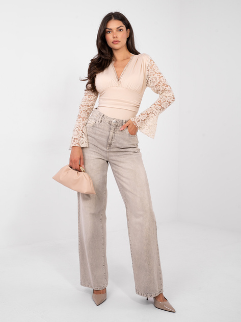 Beżowe eleganckie body z rozkloszowanym rękawem
