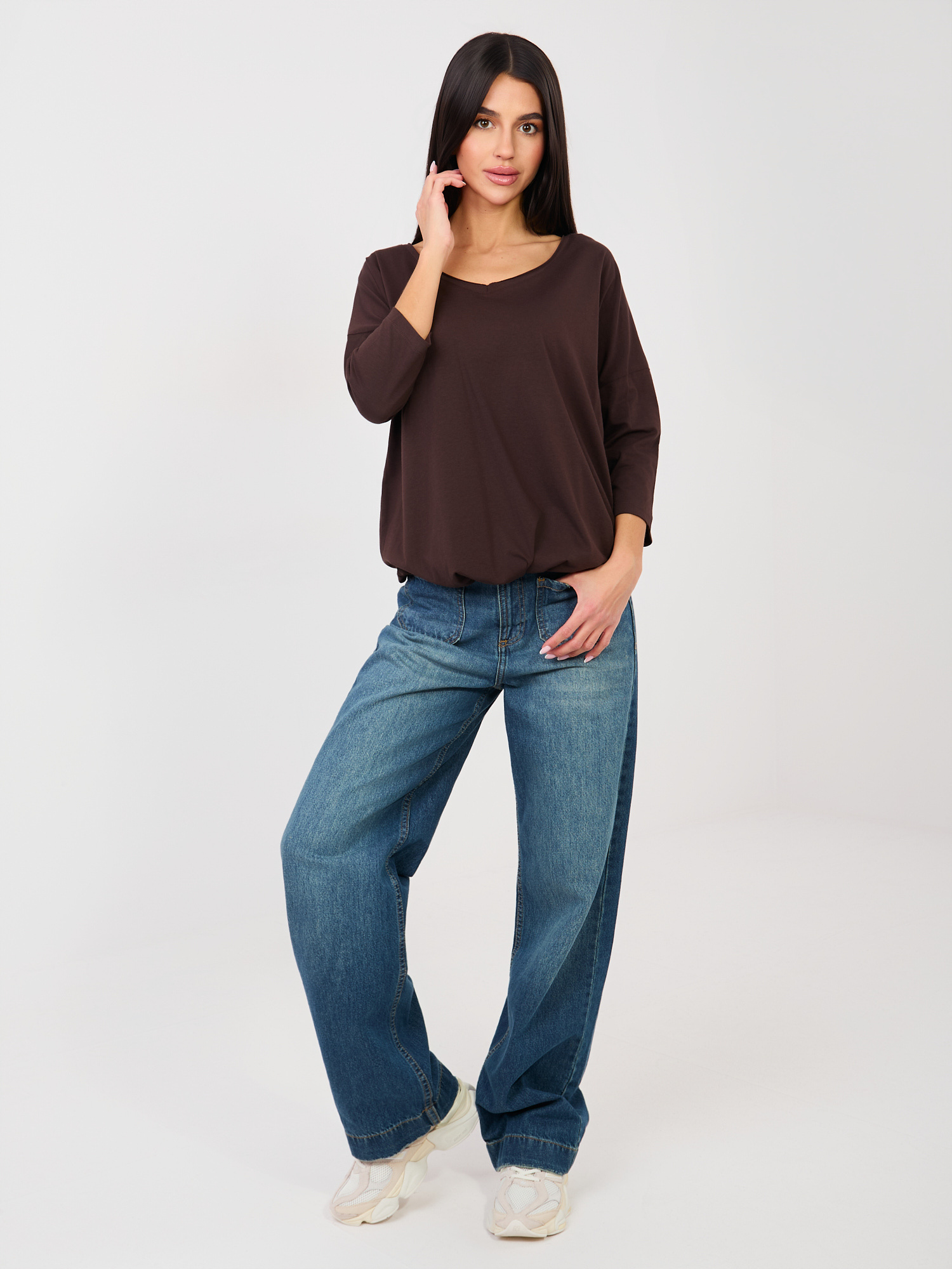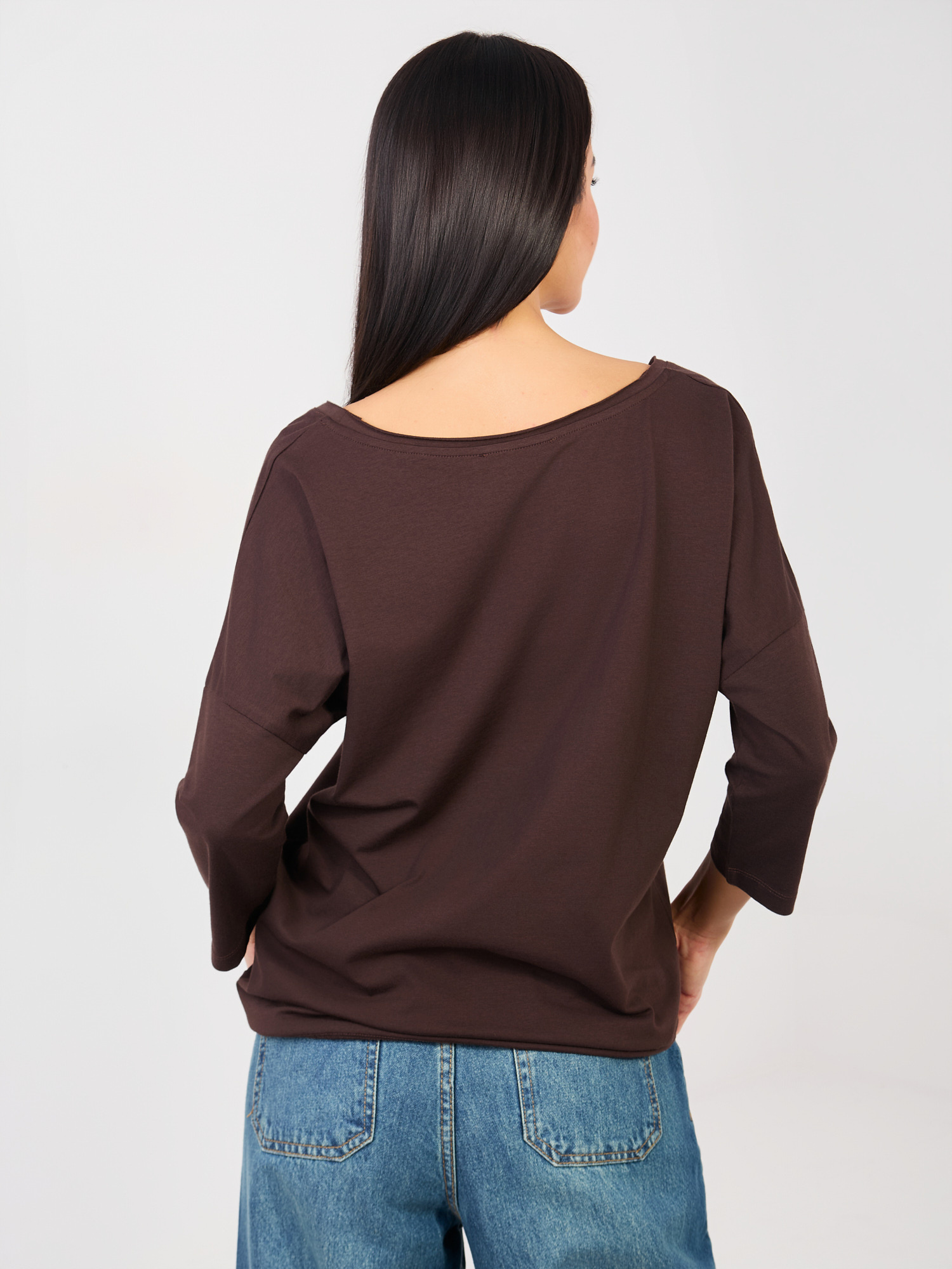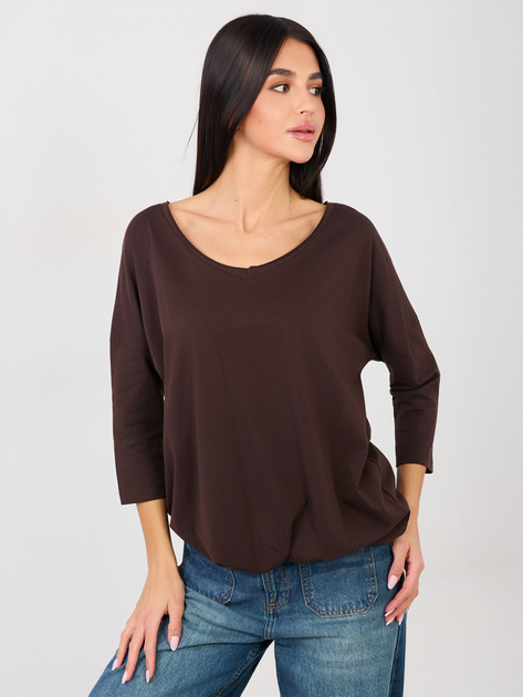 Czekoladowa bluzka basic z wiązaniem RUE PARIS .