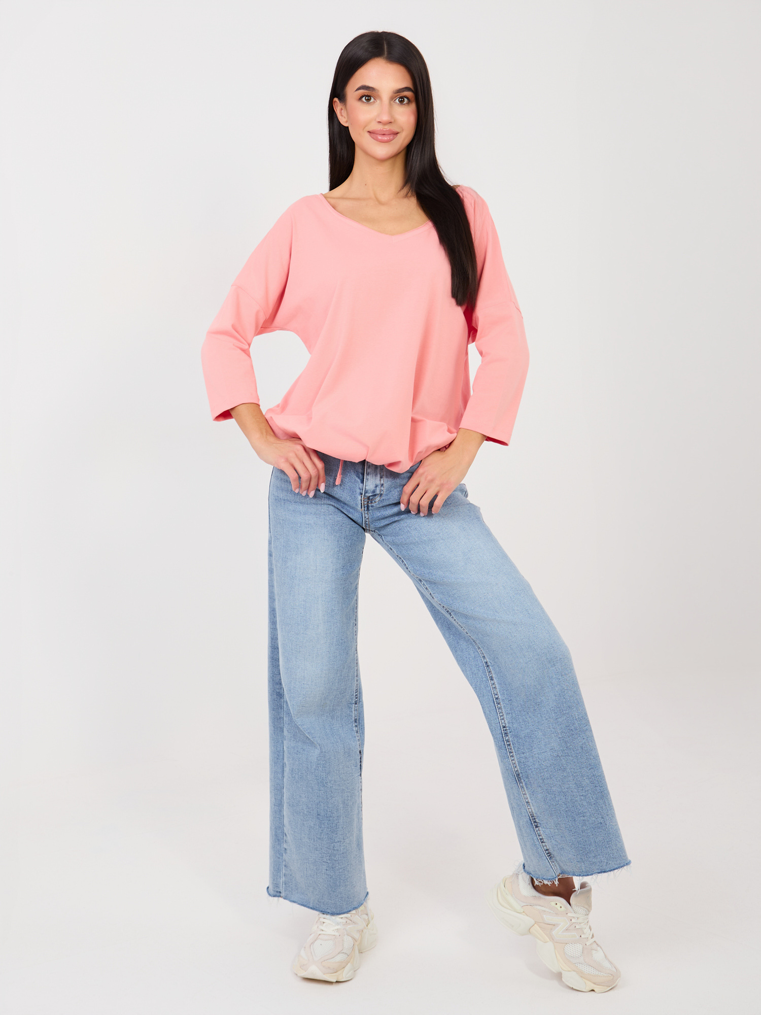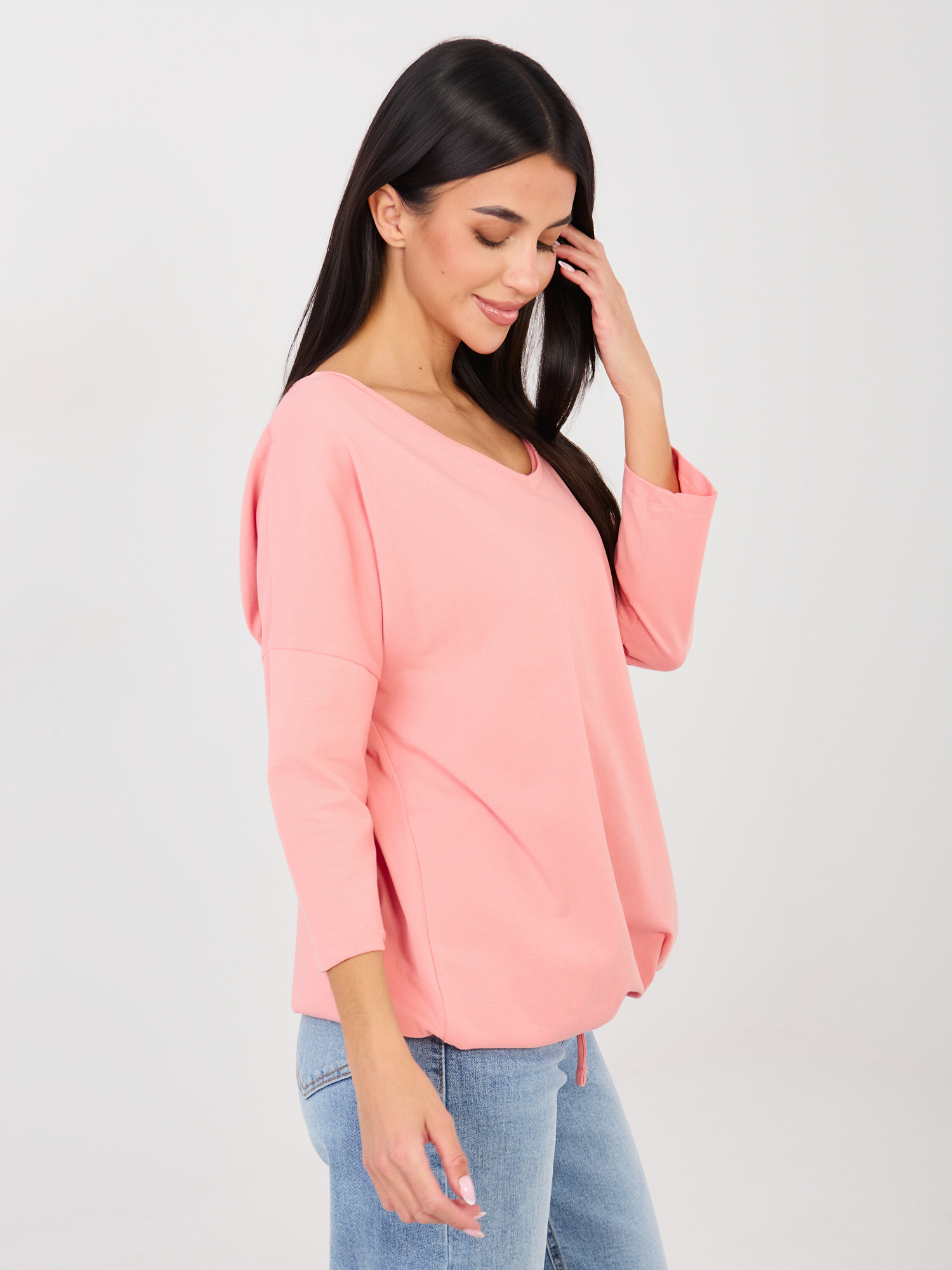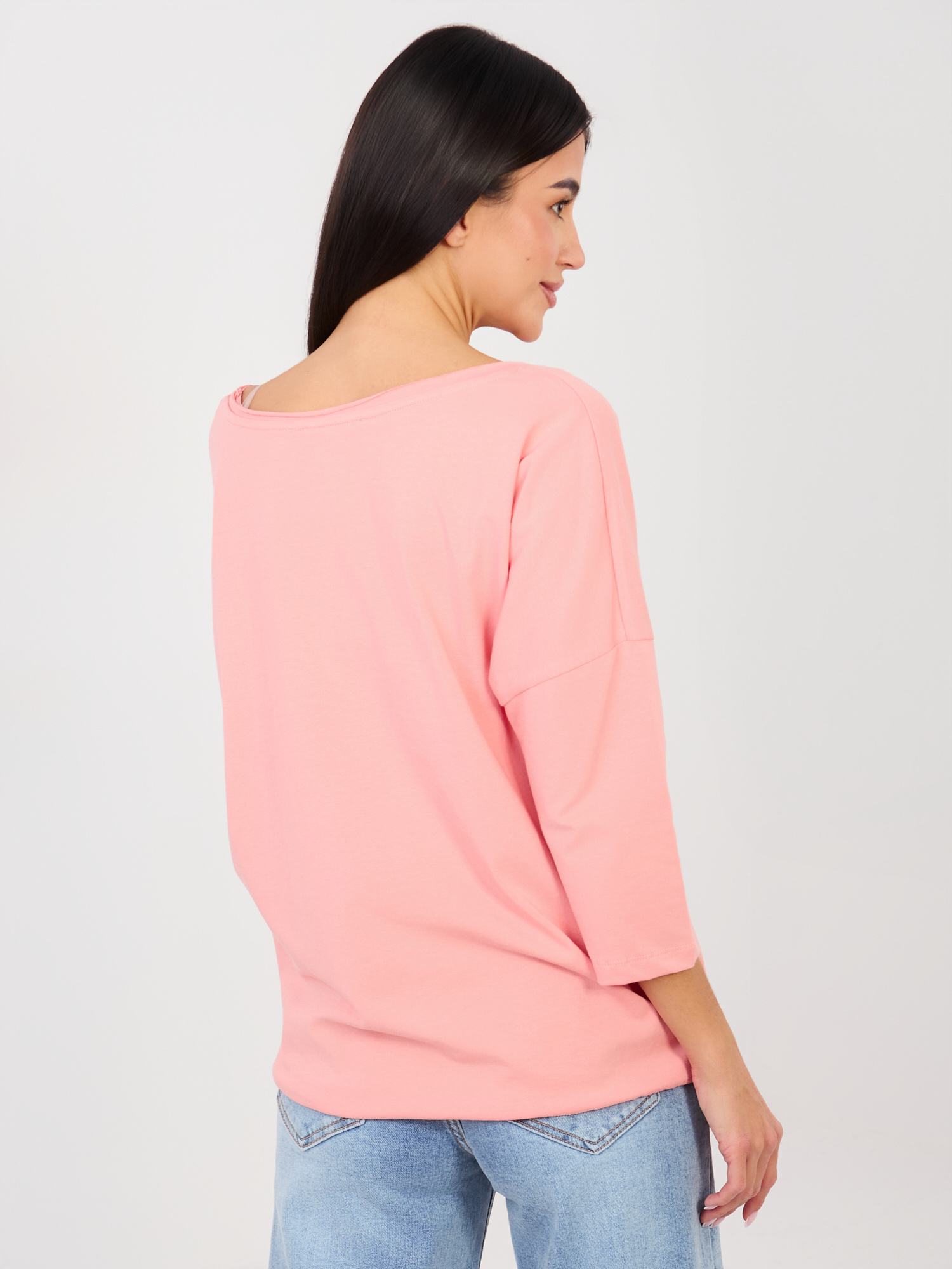 Brzoskwiniowa bluzka z okrągłym dekoltem RUE PARIS .