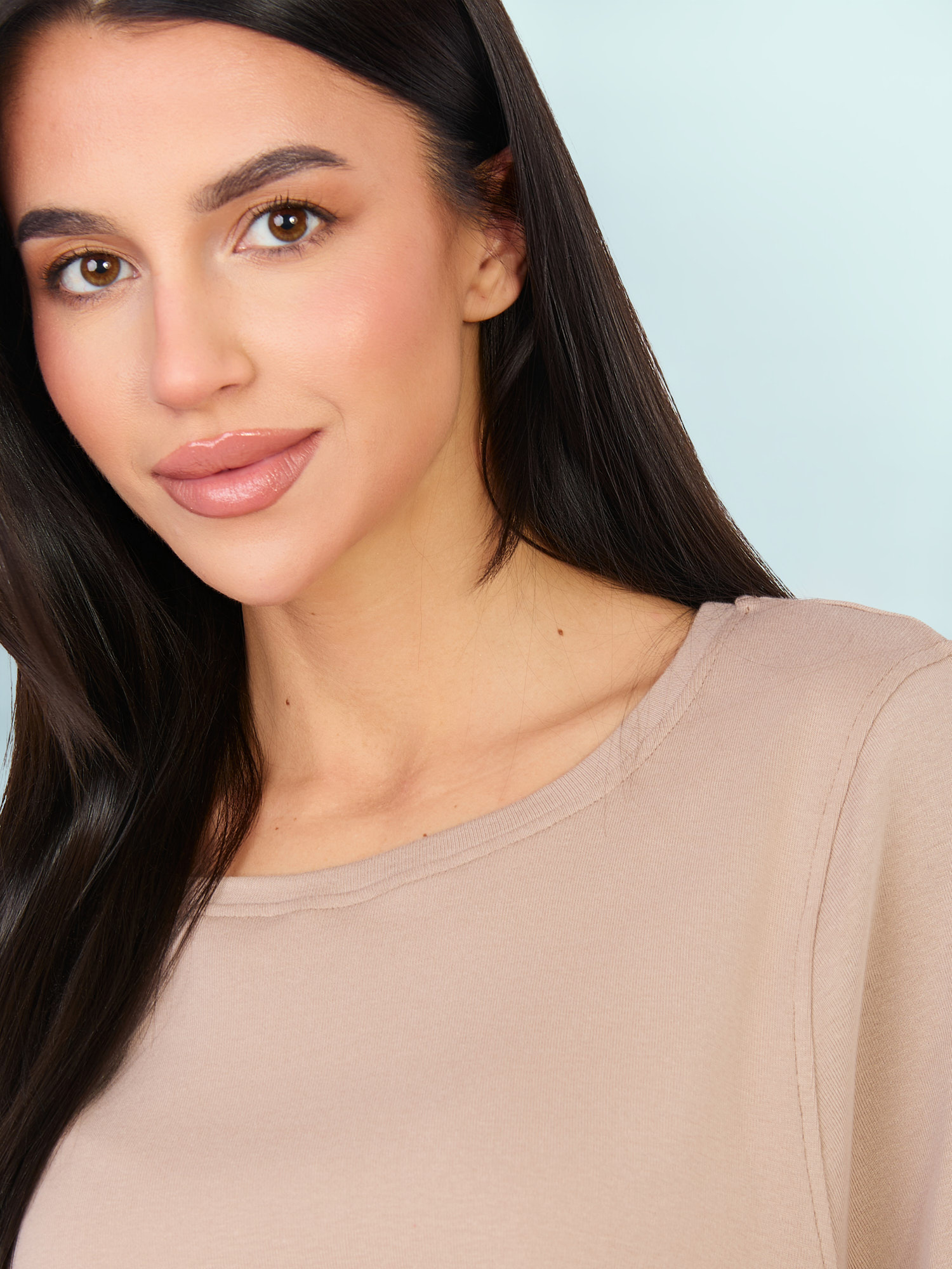 Ciemnobeżowy t-shirt basic z ozdobnymi szwami RUE PARIS .