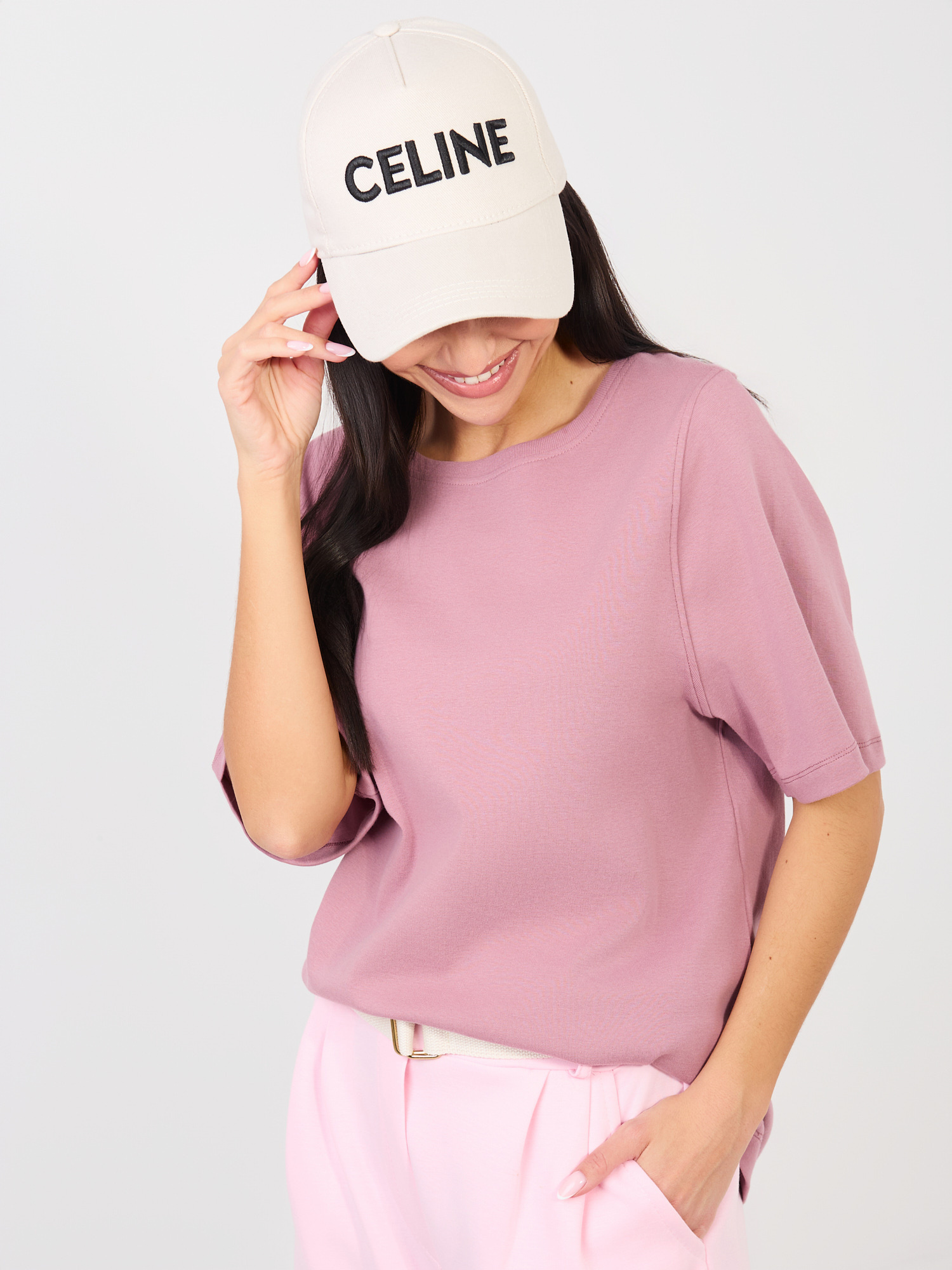Brudnoróżowy damski t-shirt basic z bawełny RUE PARIS .