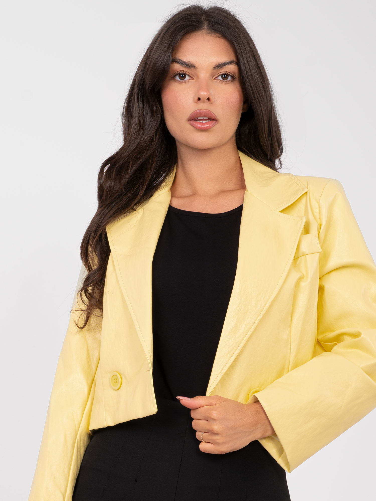 Jasnożółta skórzana marynarka z podszewką RUE PARIS .
