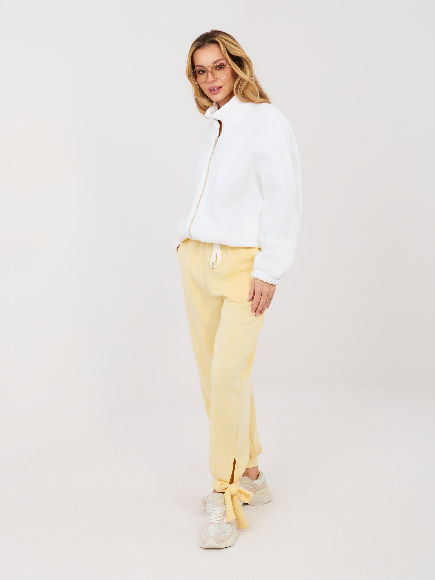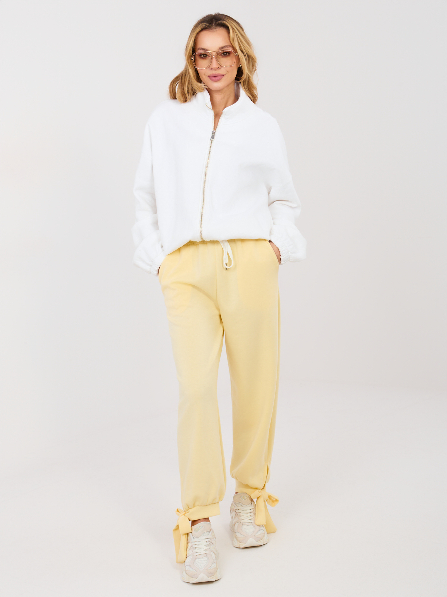 Jasnożółte dresowe spodnie z kieszeniami