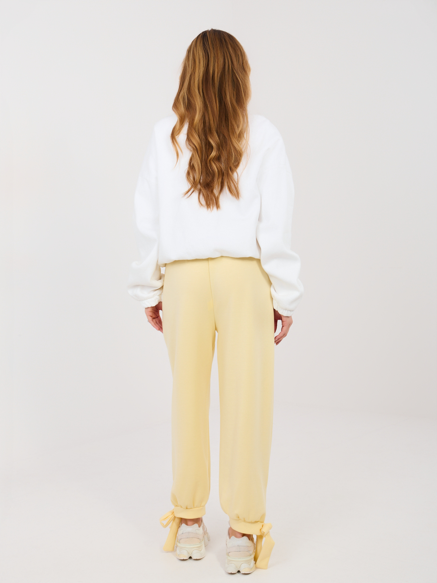 Jasnożółte dresowe spodnie z kieszeniami .