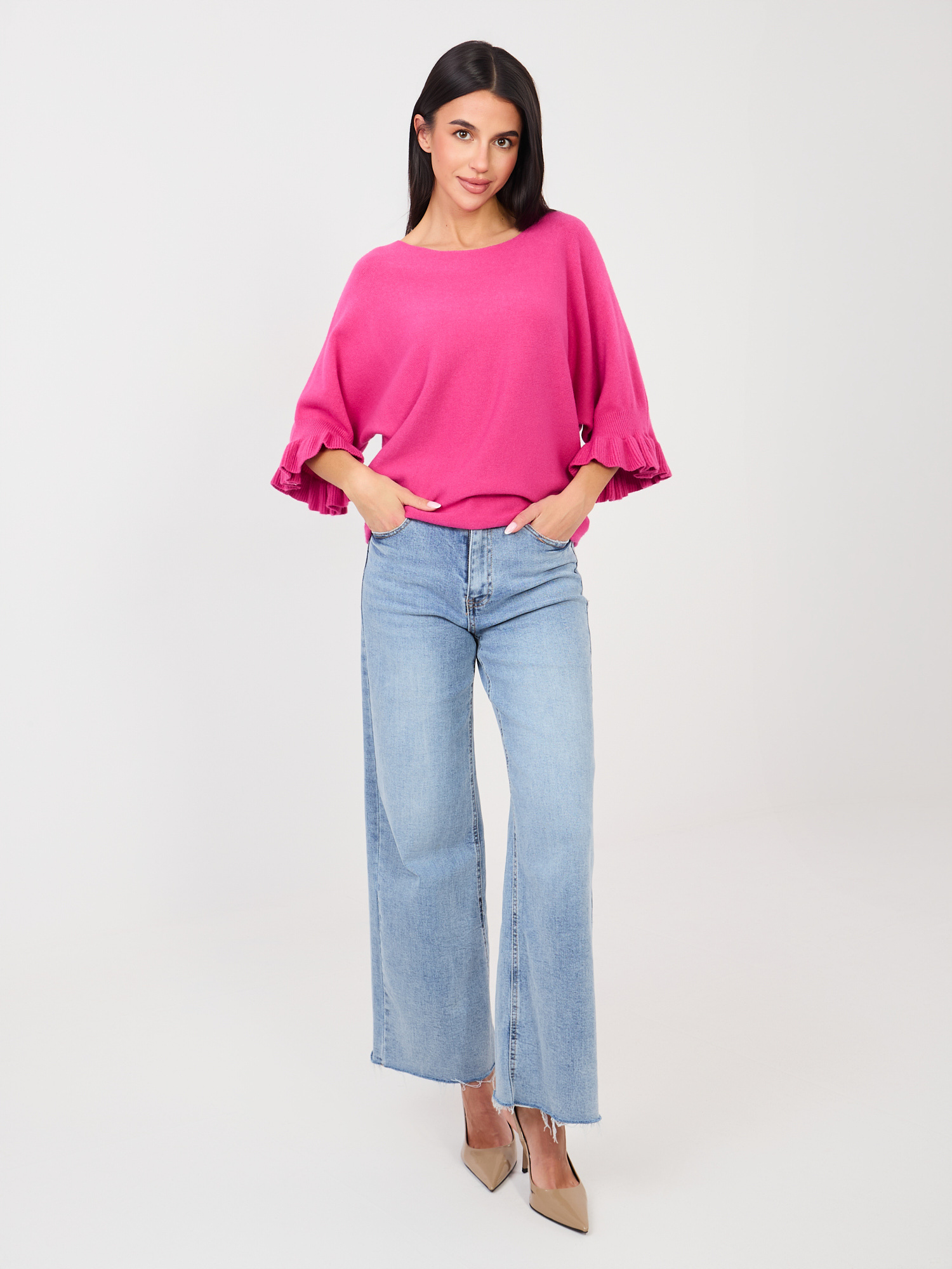 Fuksjowy damski sweter z jednolitym kolorze .