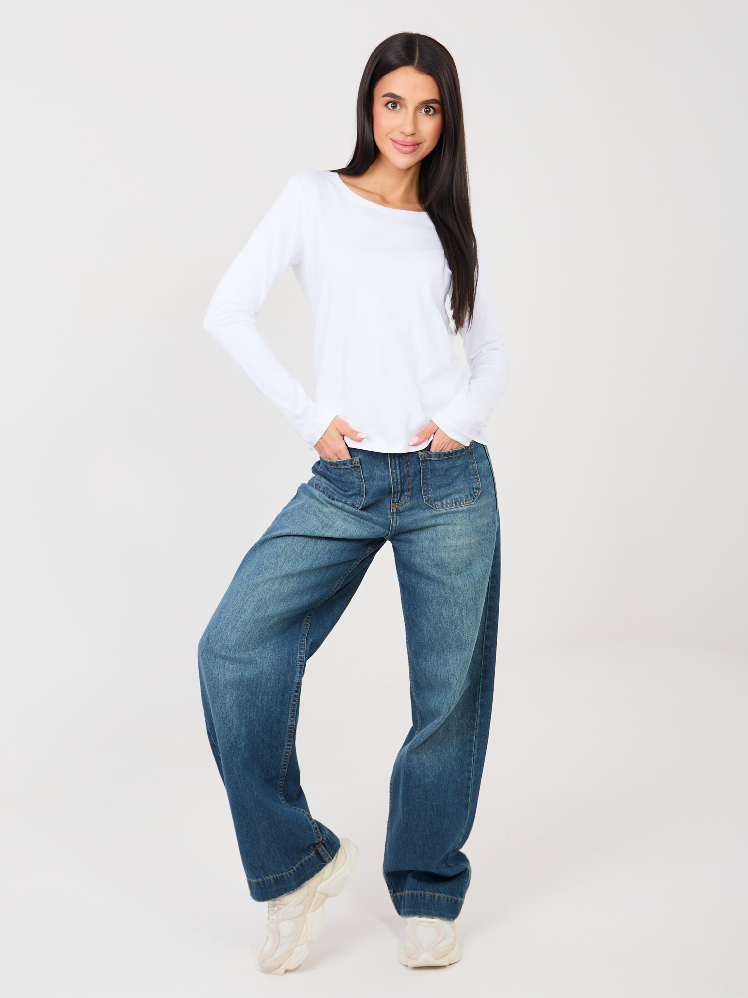 Biały longsleeve basic z okrągłym dekoltem RUE PARIS .