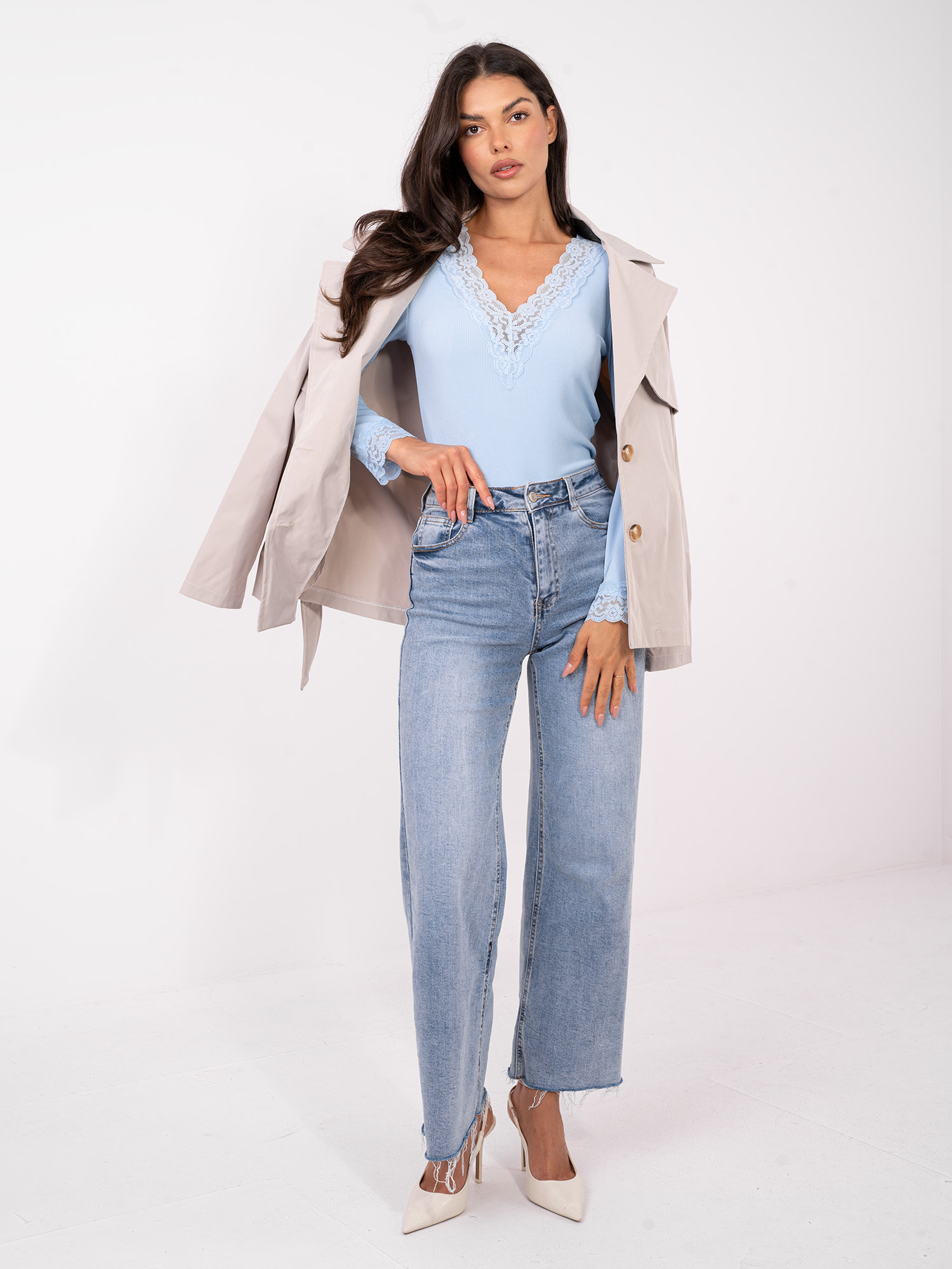 Jasnoniebieska prążkowana bluzka z dekoltem V