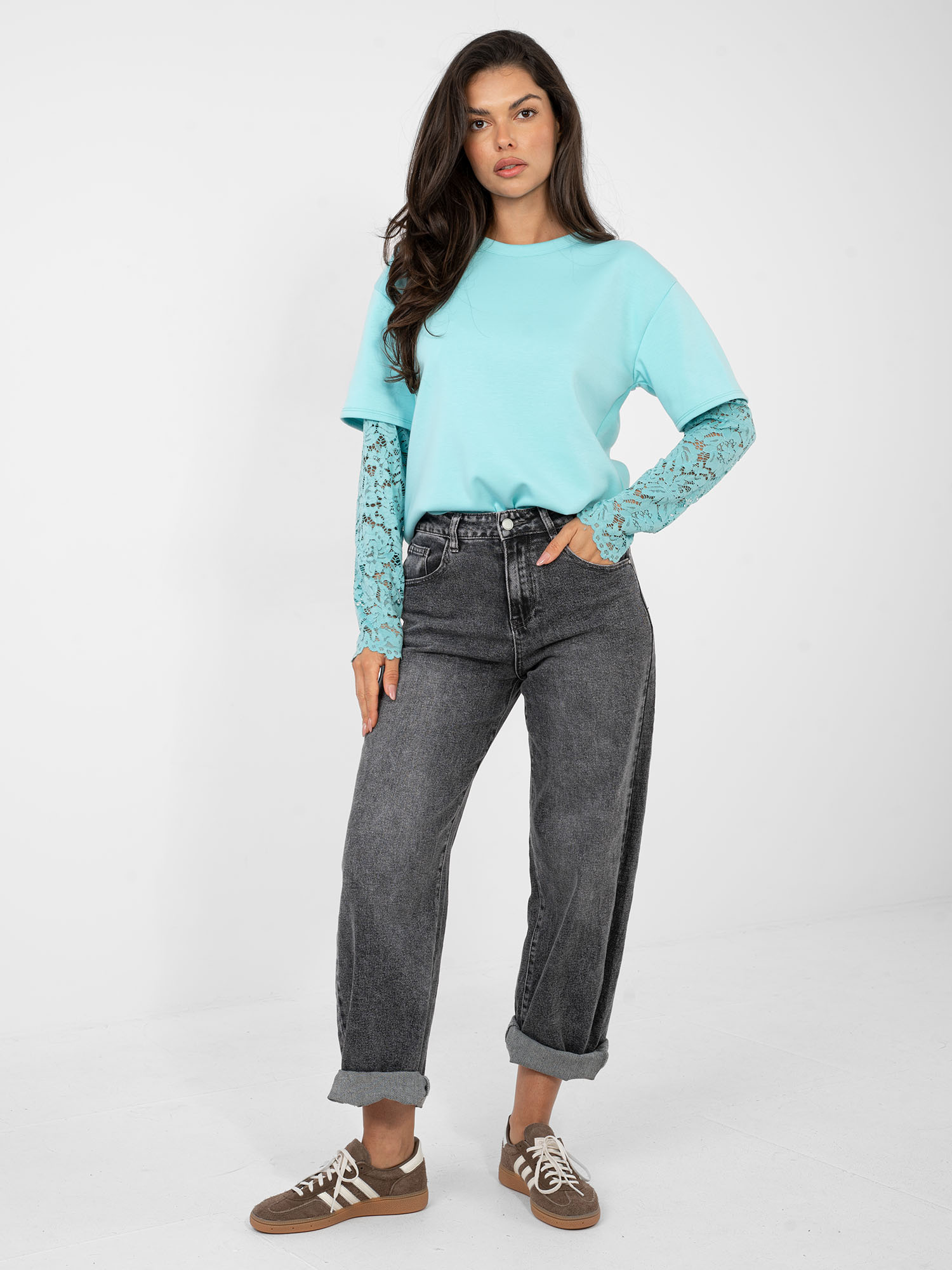 Miętowa damska bluzka z imitacją t-shirtu
