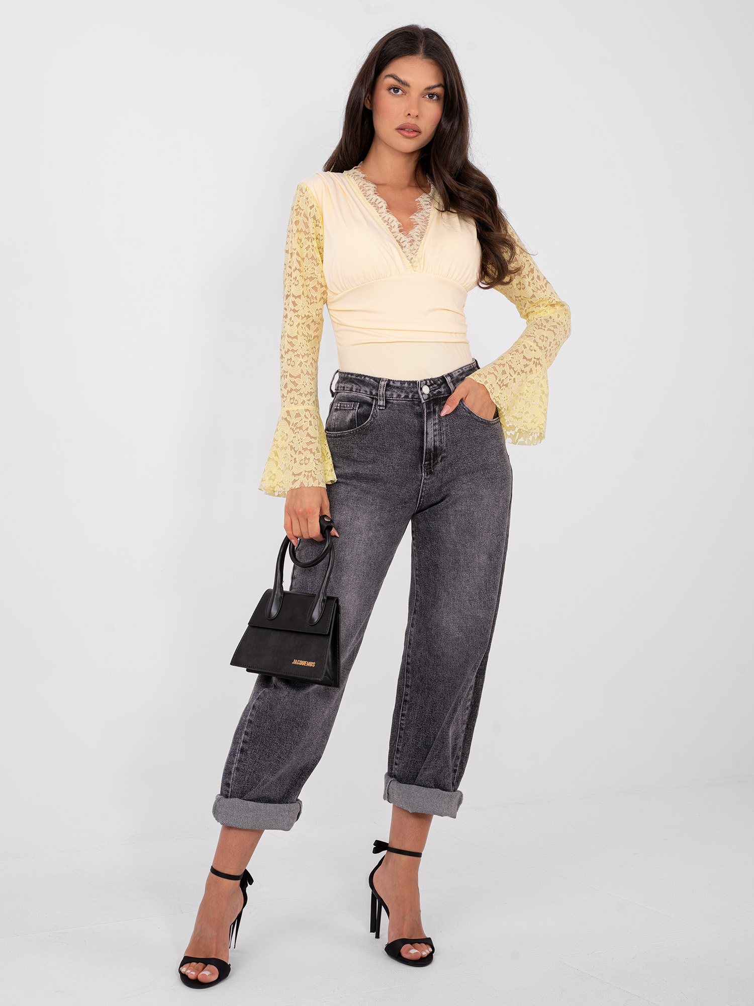 Jasnożółte eleganckie body z dekoltem V