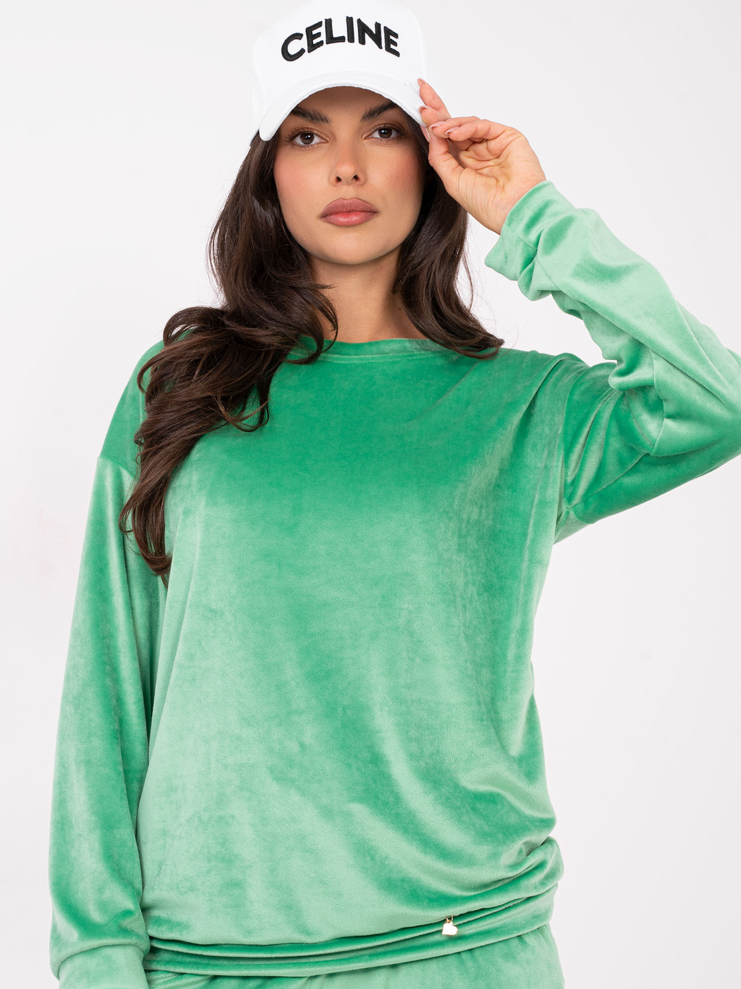 Jasnozielony damski komplet z weluru .