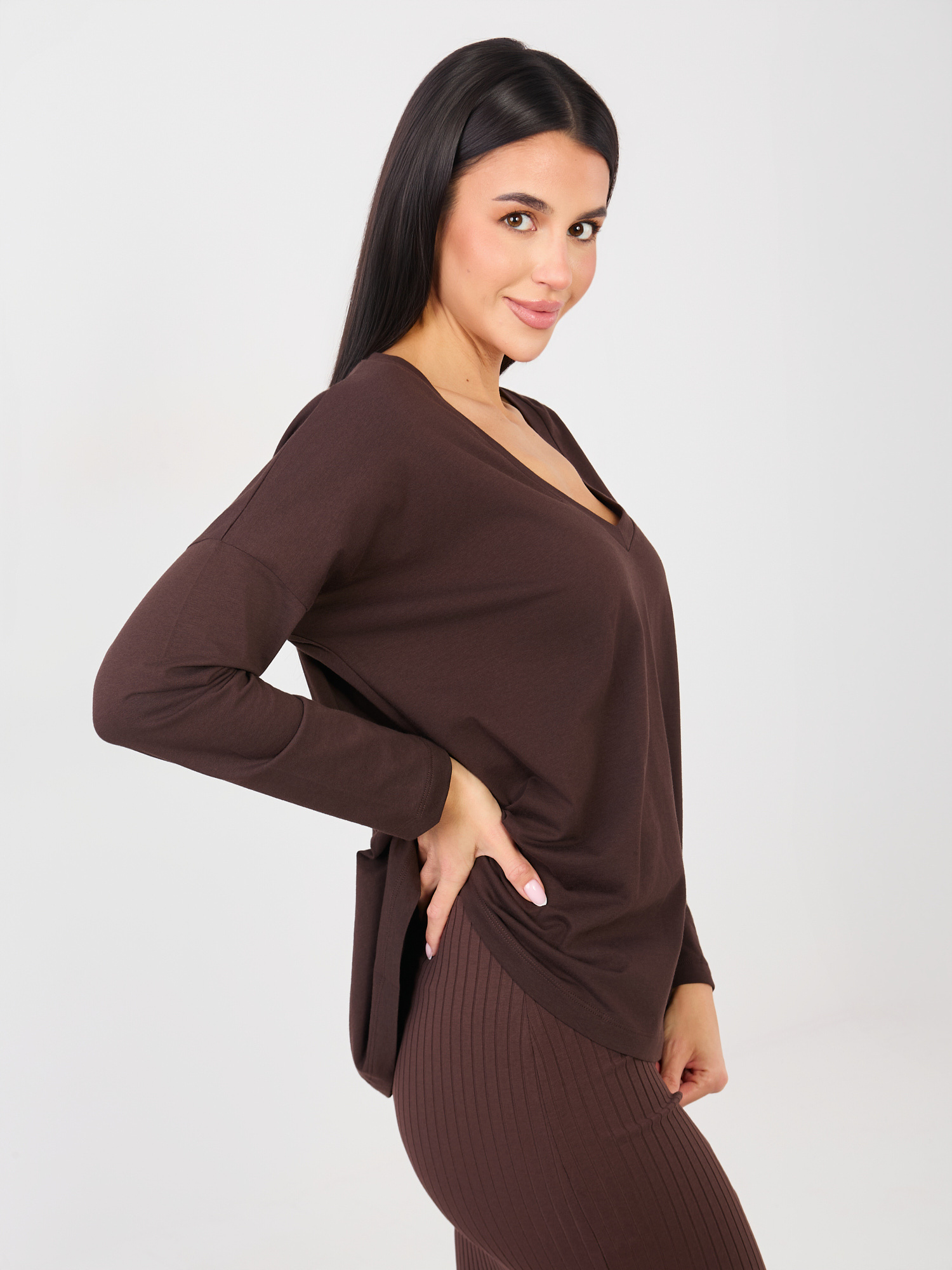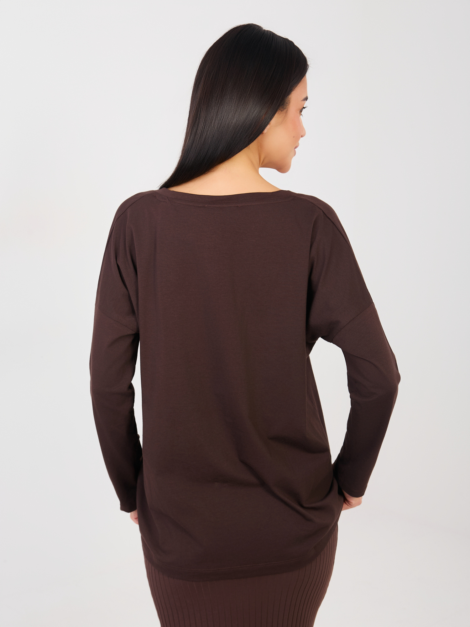 Czekoladowa bluzka oversize z długim rękawem RUE PARIS .
