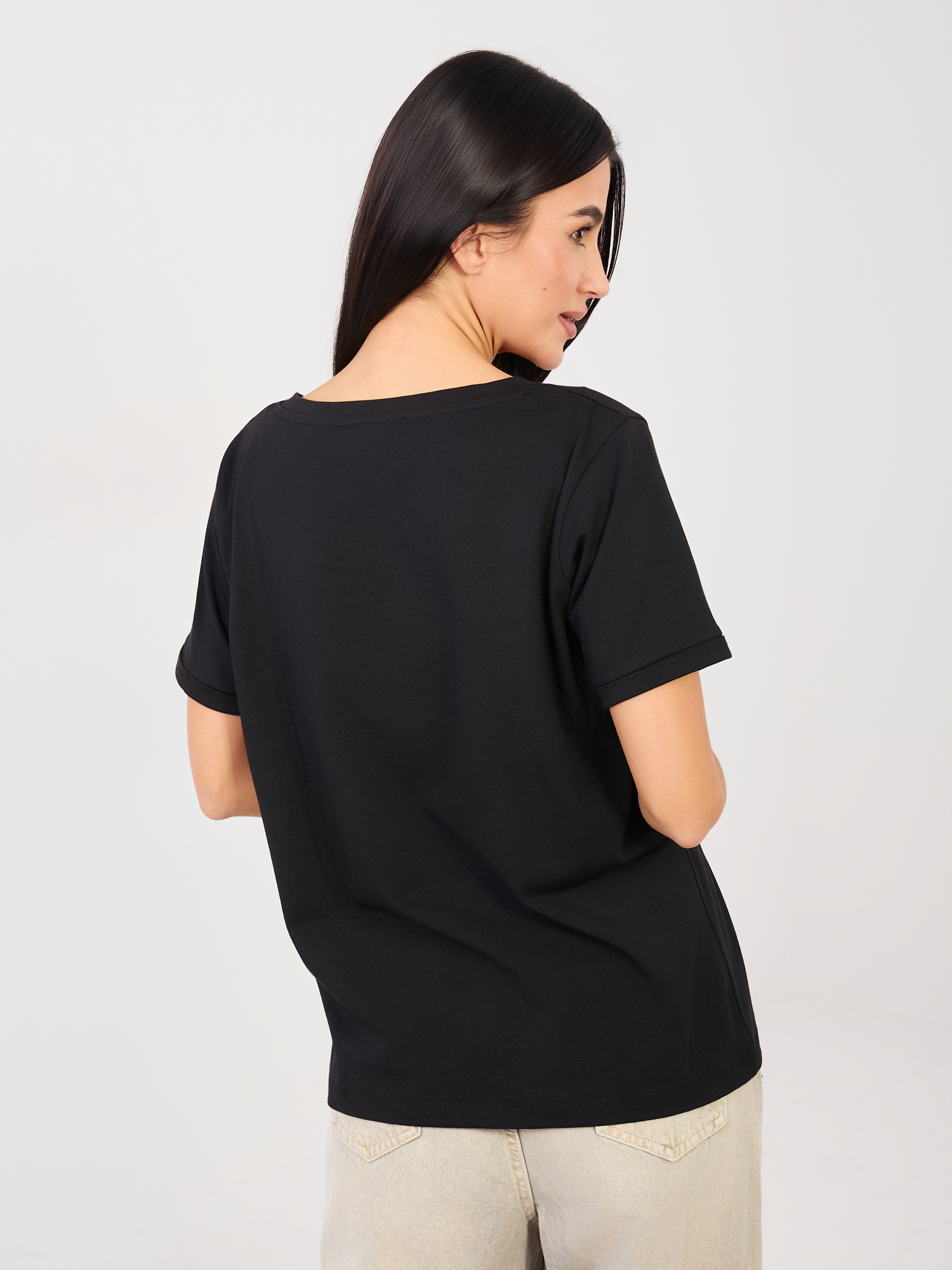 Czarny t-shirt basic z dekoltem V RUE PARIS .