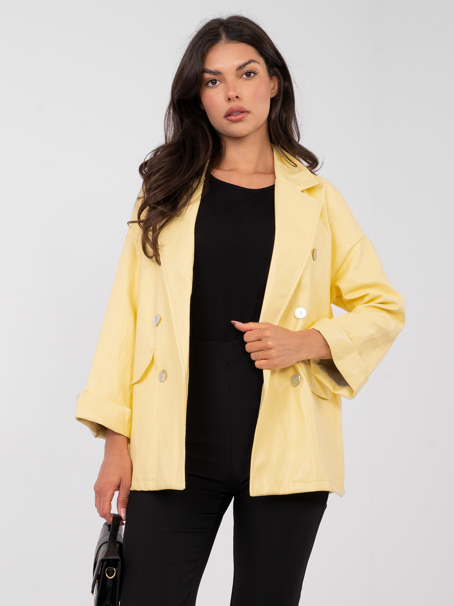 Jasnożółta marynarka oversize z ekoskóry RUE PARIS .