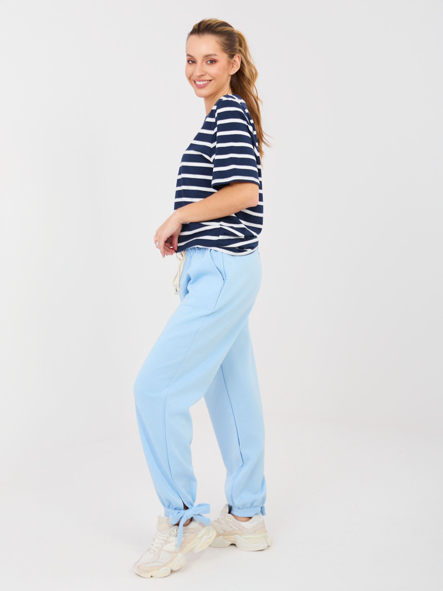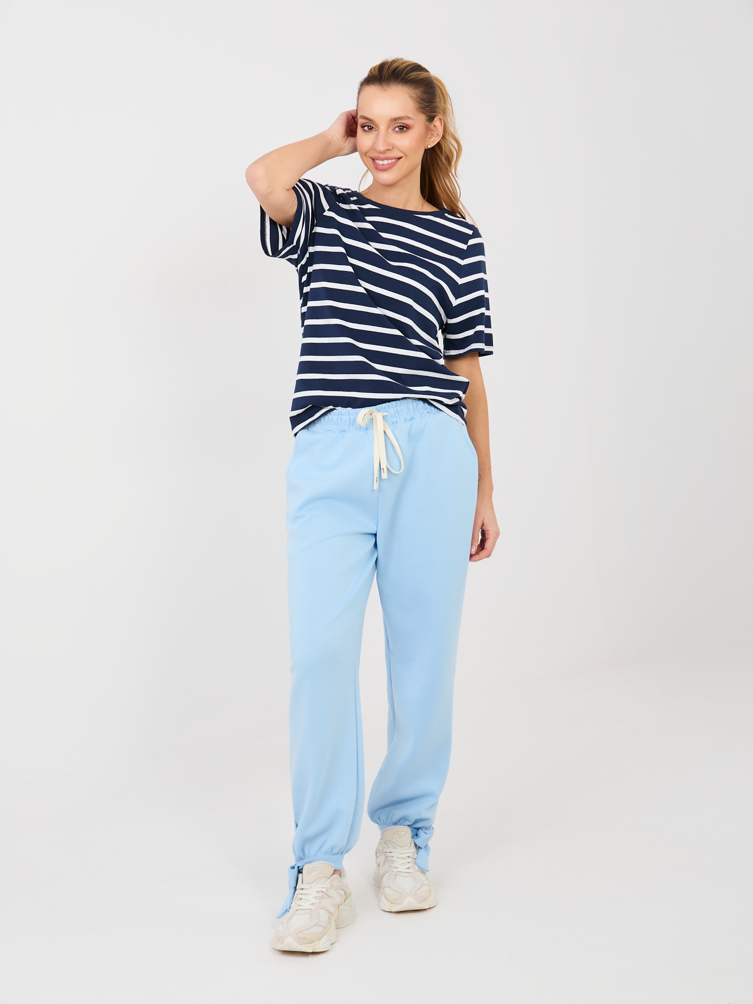 Jasnoniebieskie dresowe spodnie wiązane w kostce