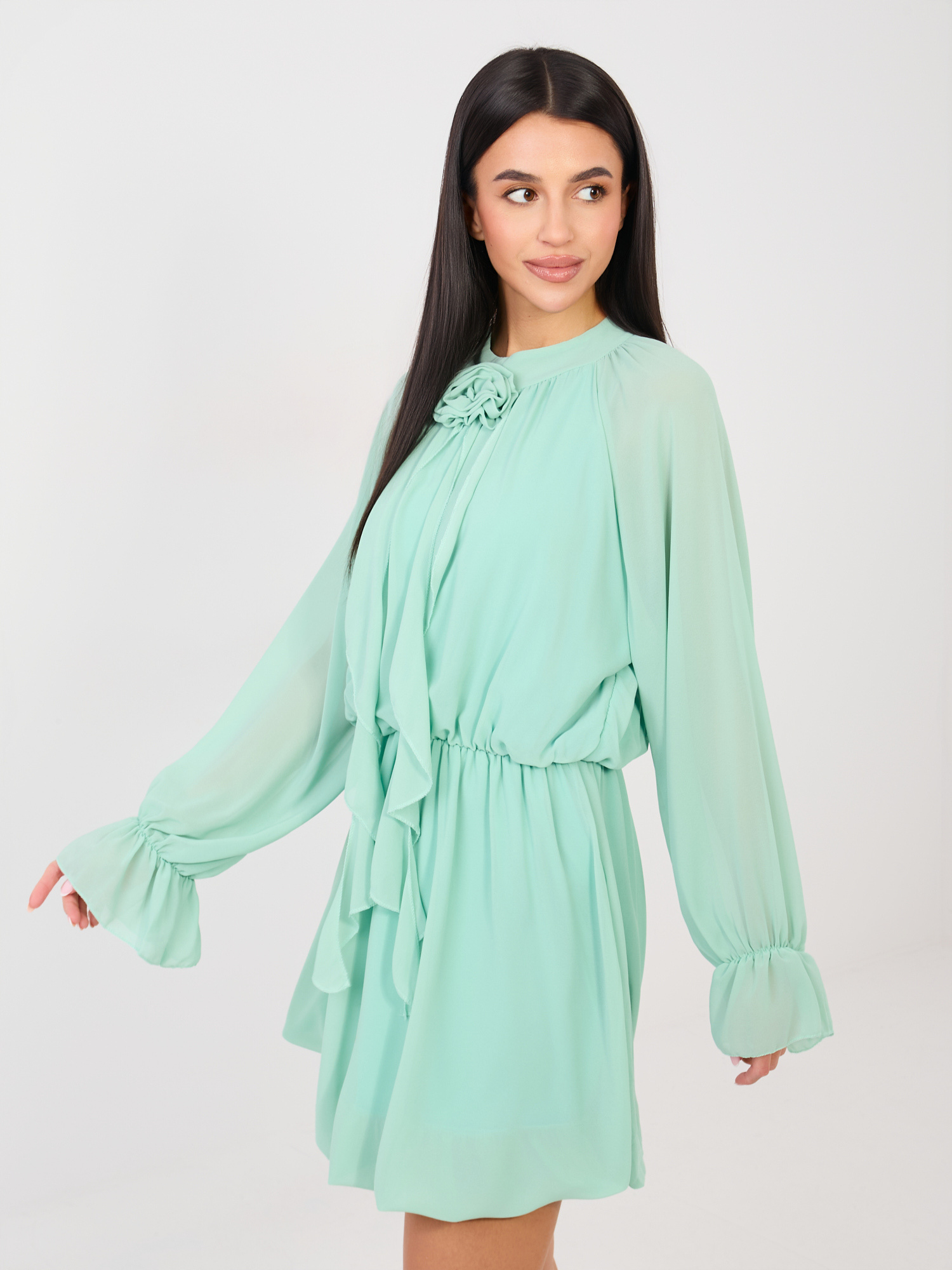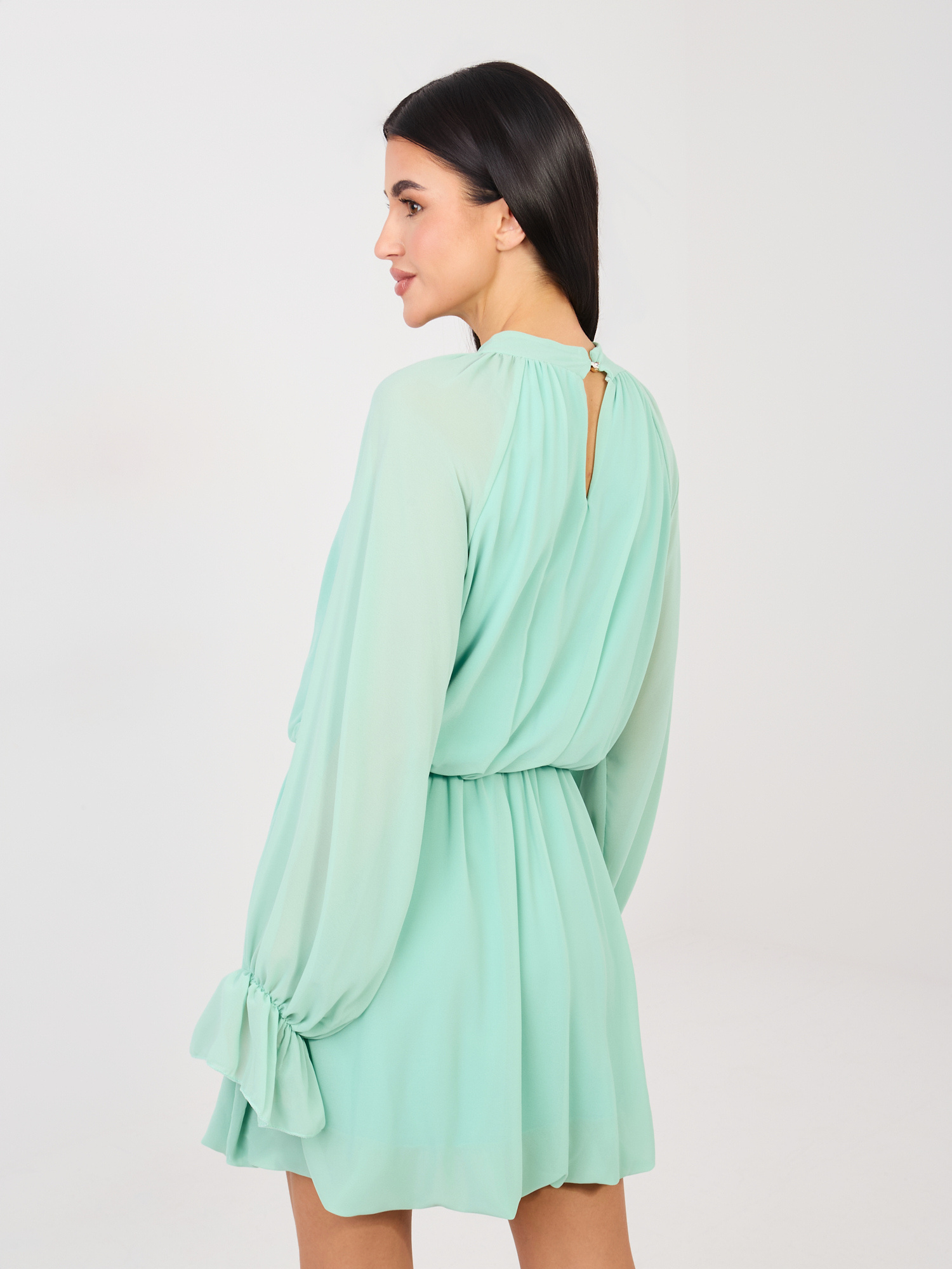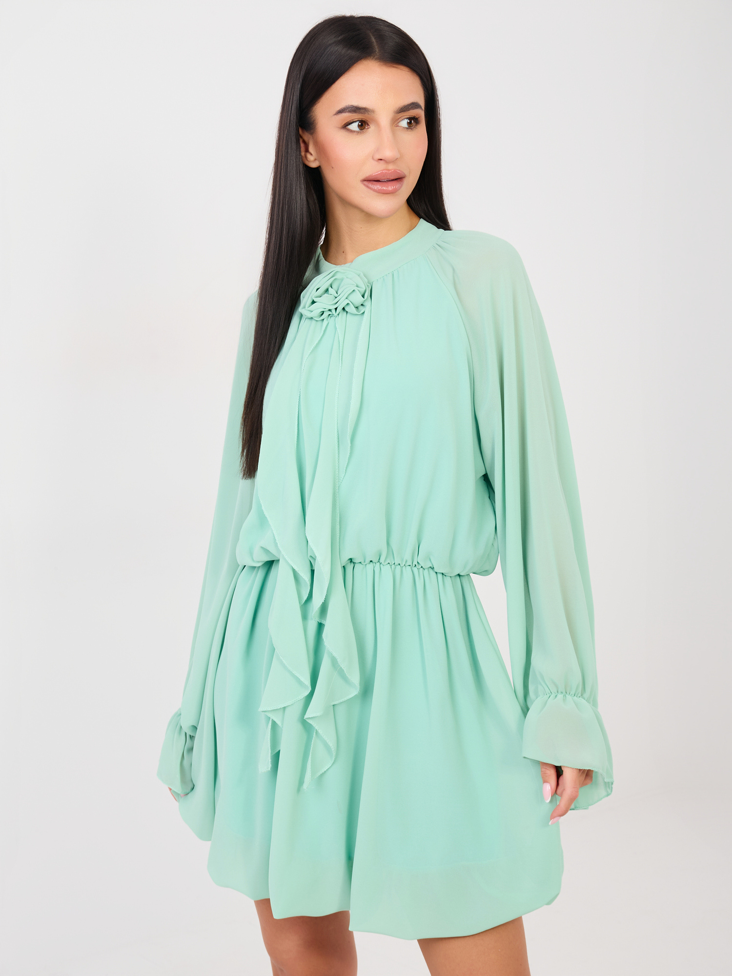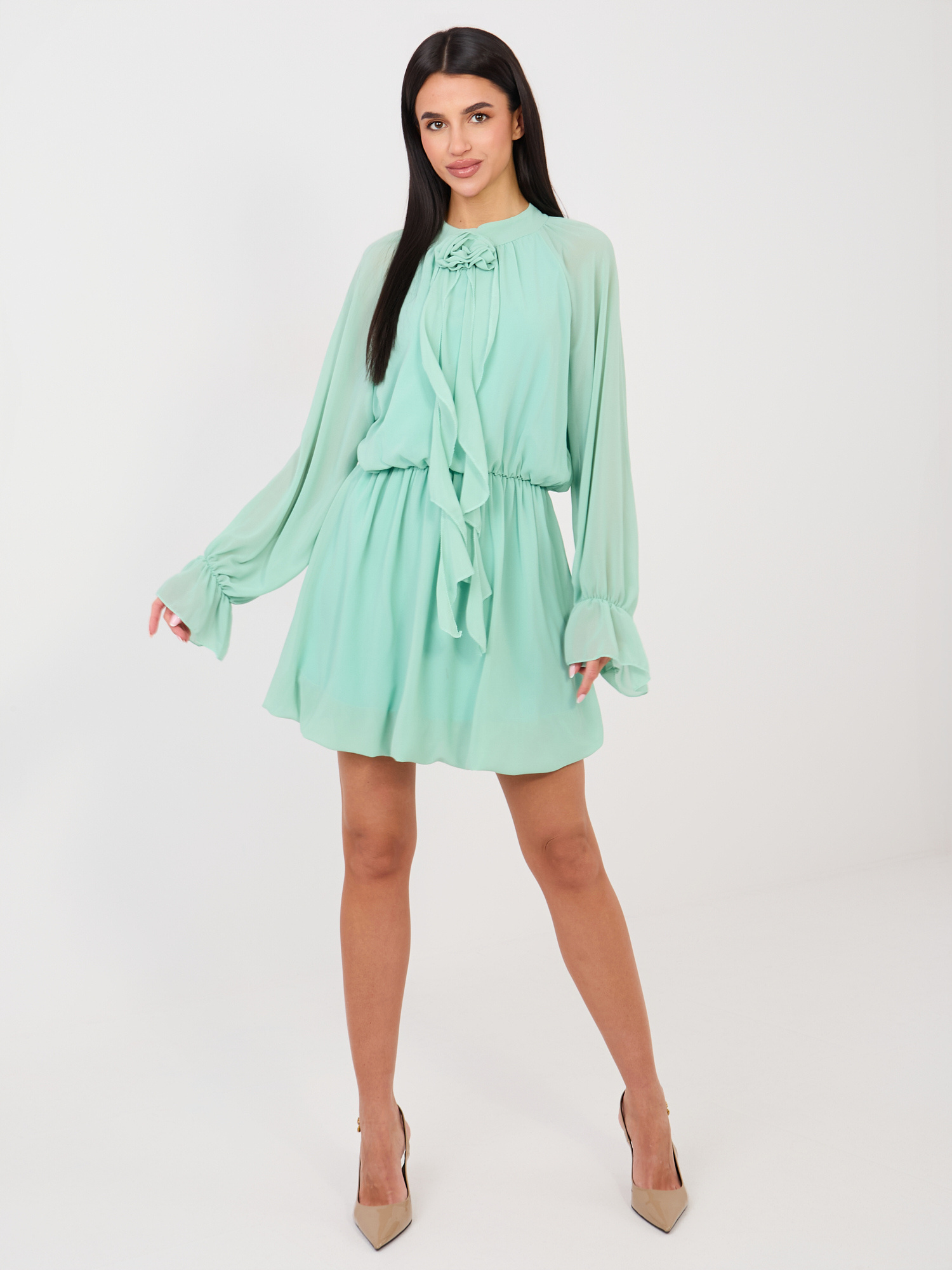 Miętowa sukienka ze ściągaczem w talii RUE PARIS .