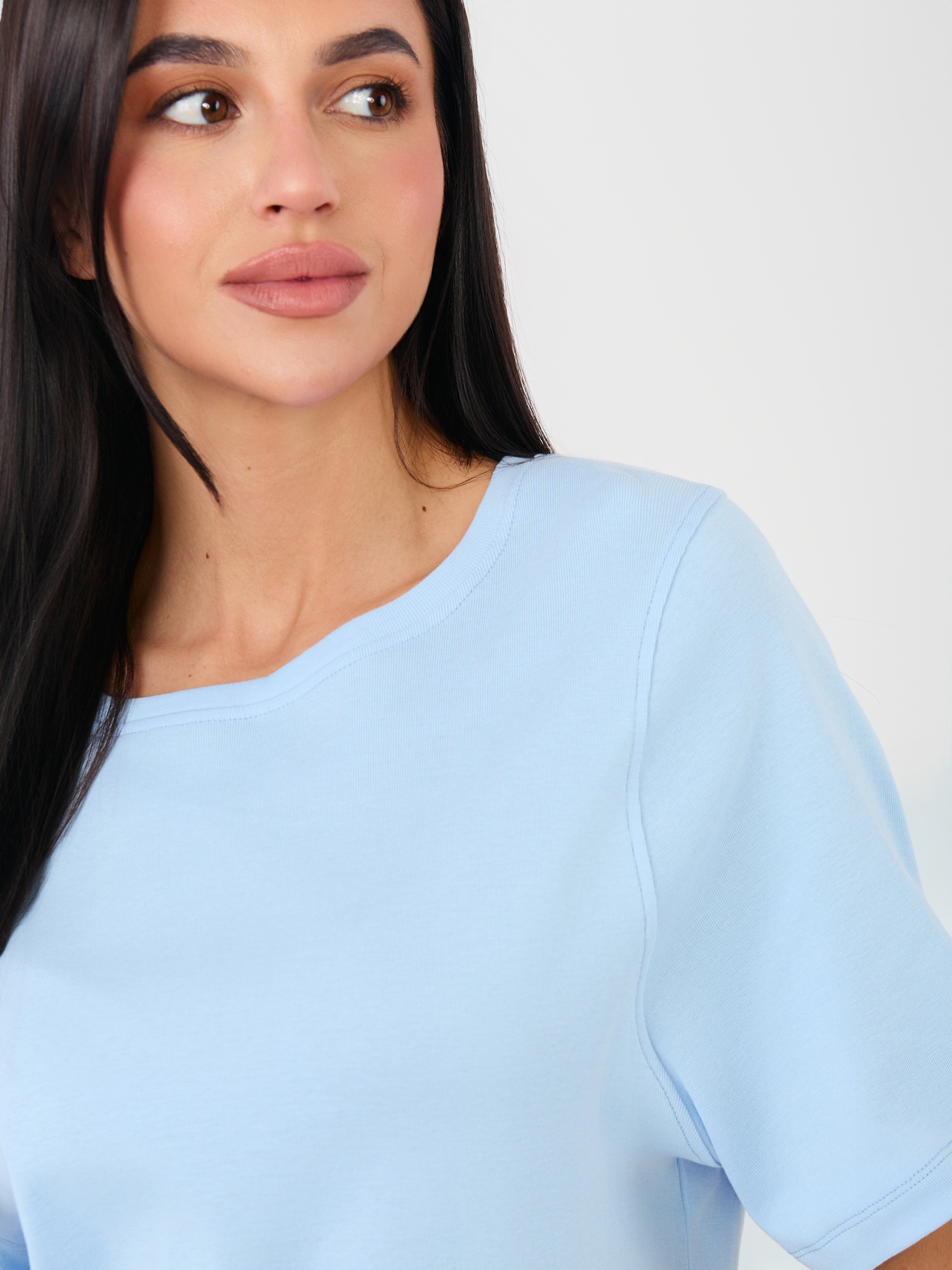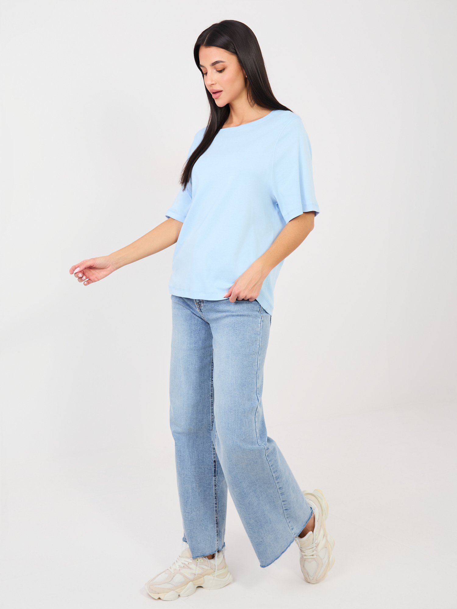Jasnoniebieski t-shirt z okrągłym dekoltem RUE PARIS .