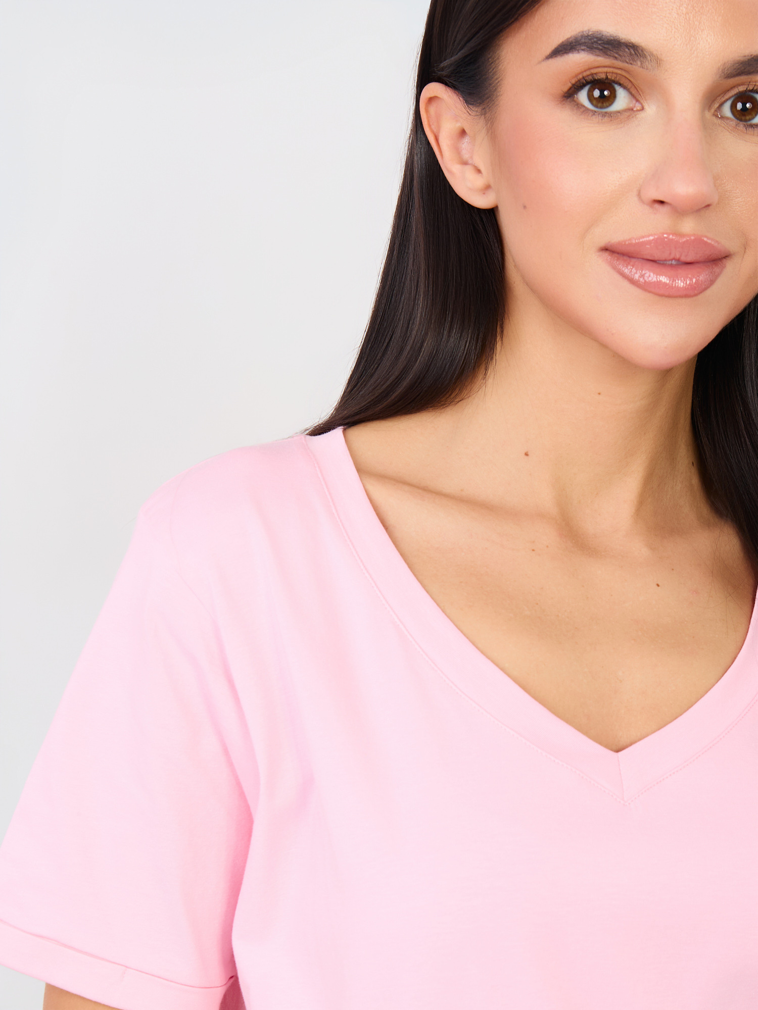 Jasnoróżowy t-shirt z dekoltem w serek RUE PARIS .