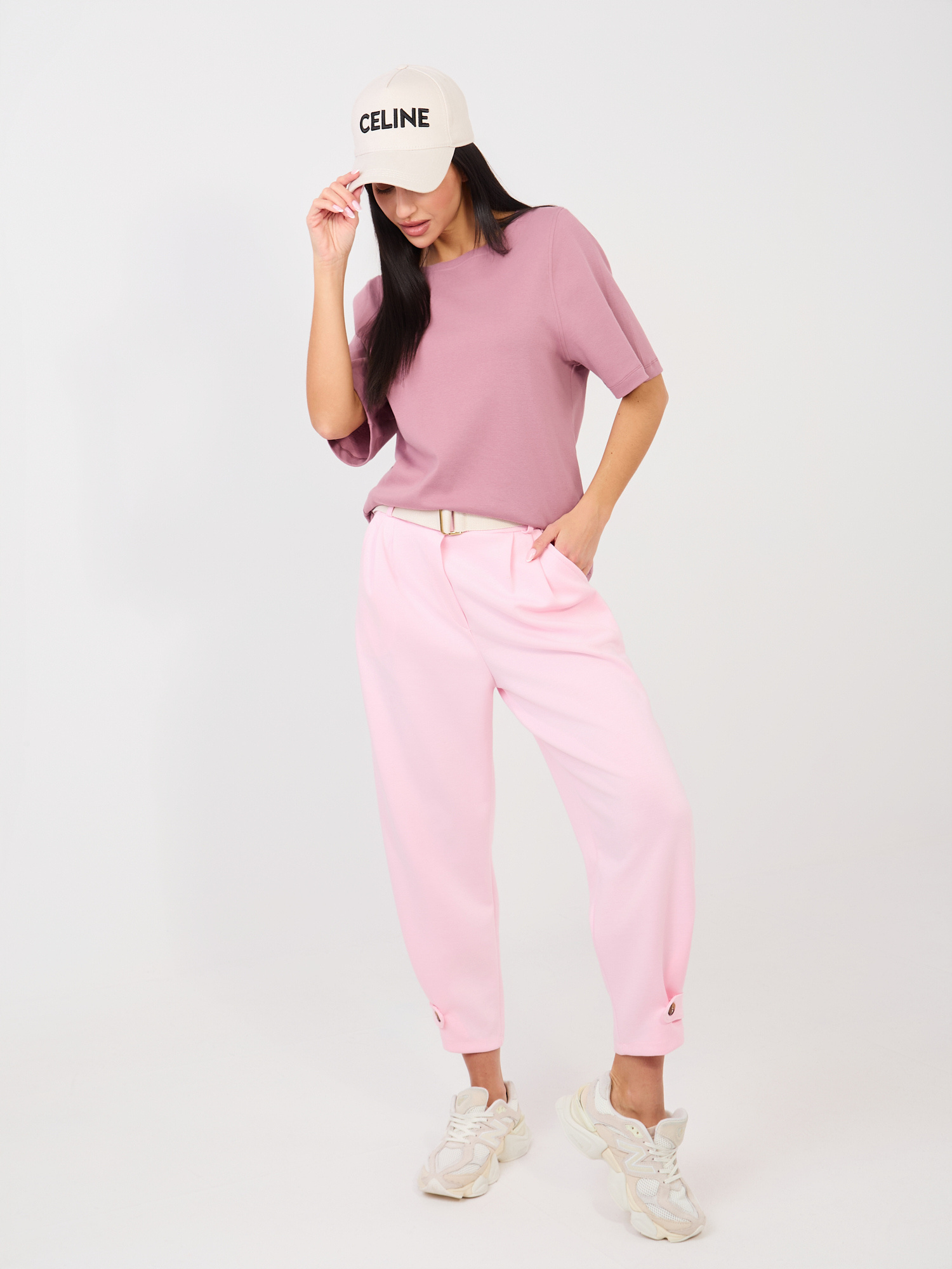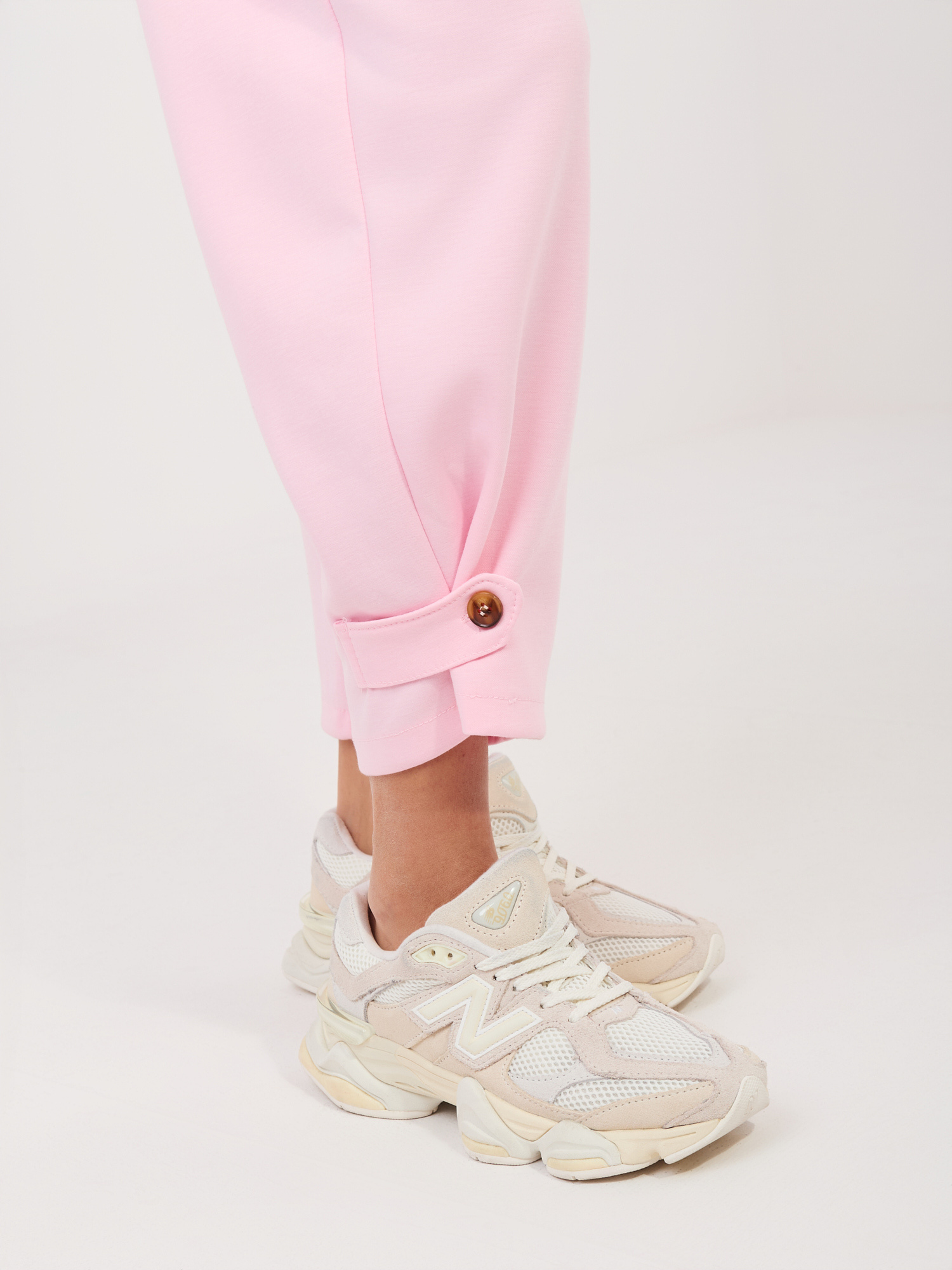 Jasnoróżowe damskie spodnie ze zwężaną nogawką