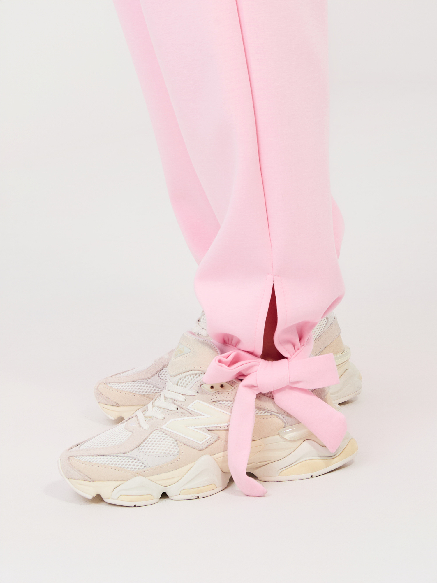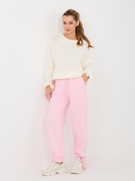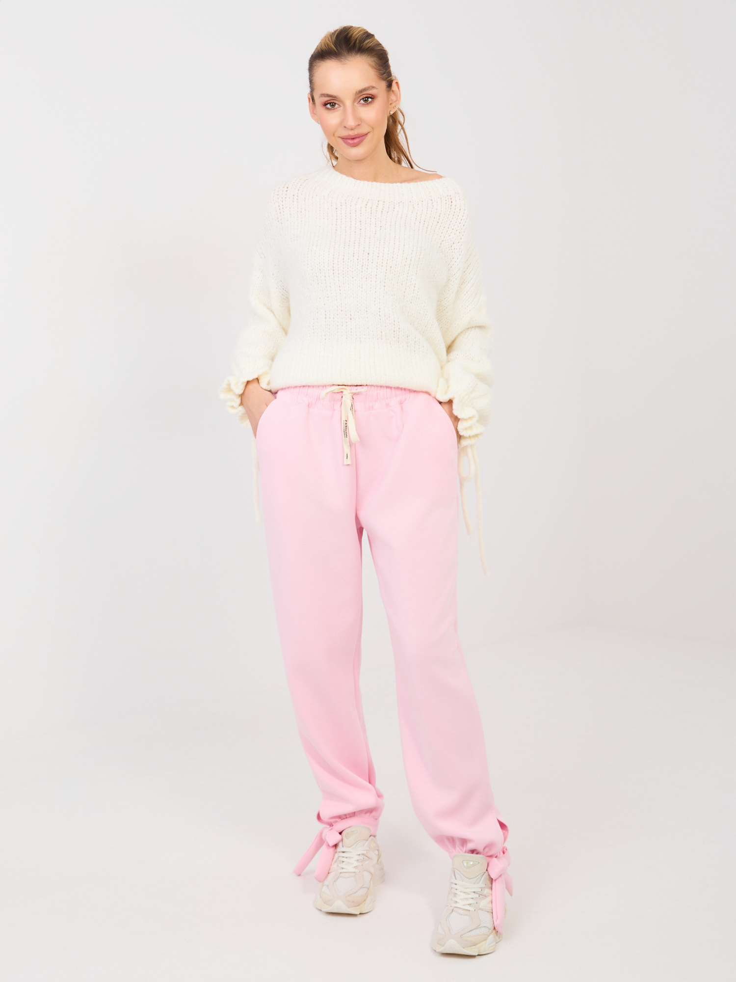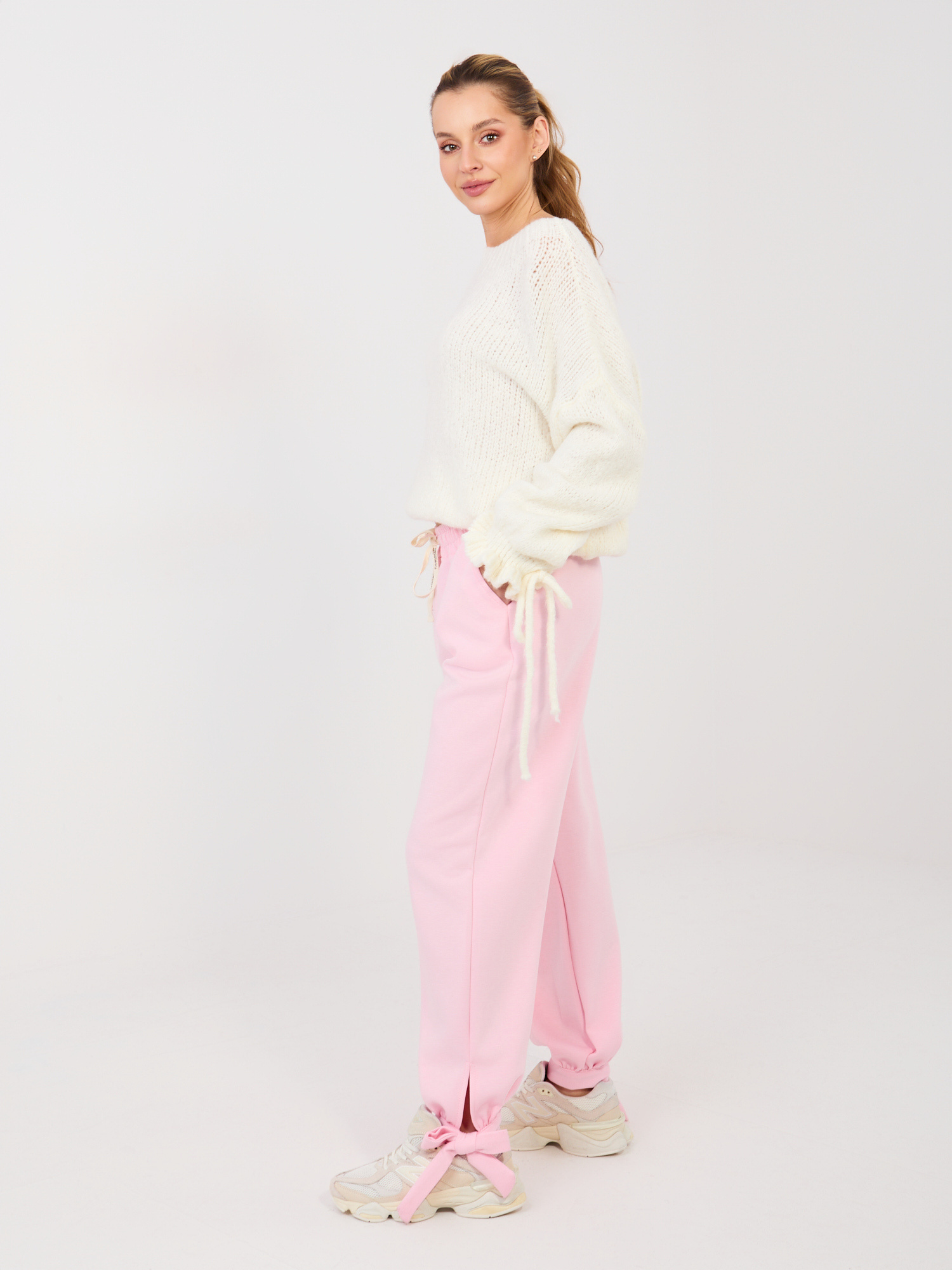 Jasnoróżowe dresowe spodnie wiązane w kostce