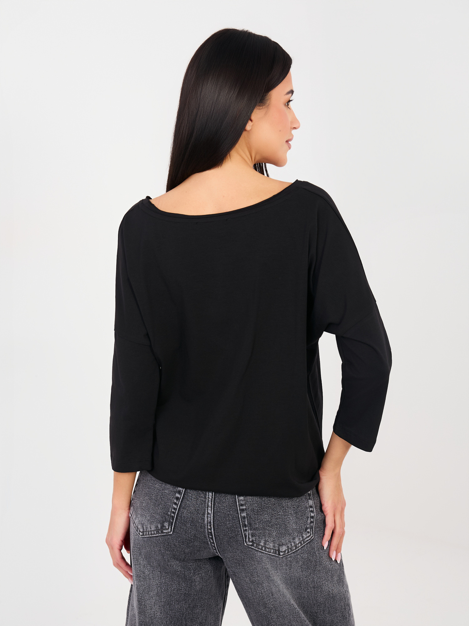 Czarna bluzka basic z rękawem 3/4 RUE PARIS .
