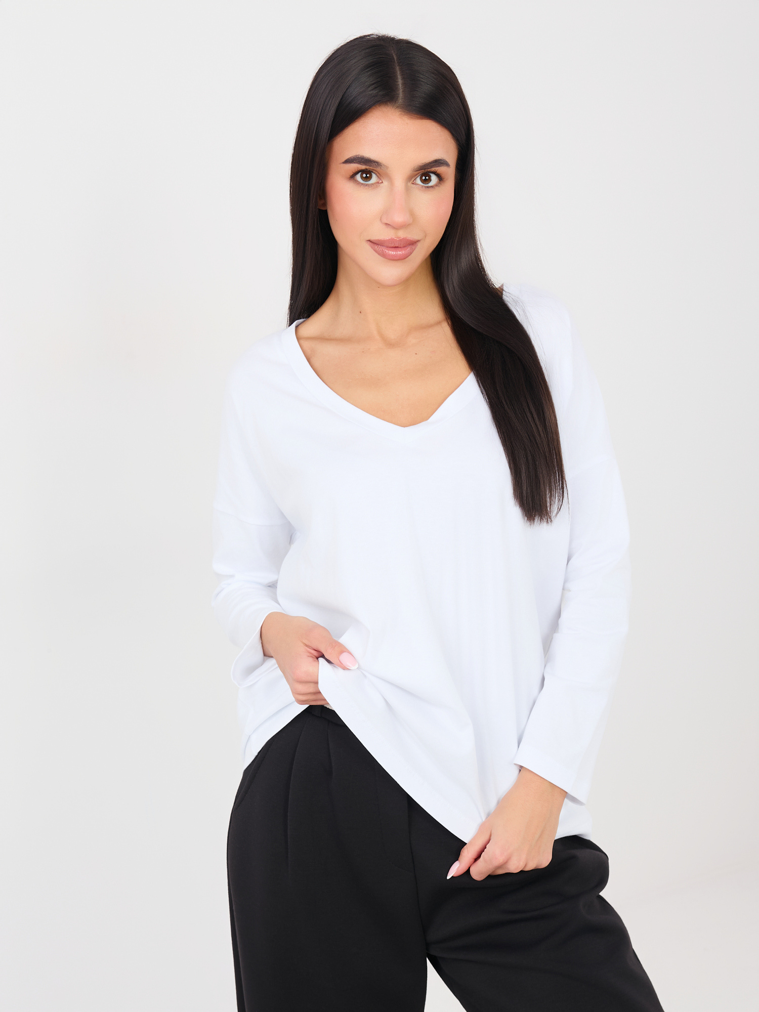 Biała damska bluzka basic z dekoltem V RUE PARIS .