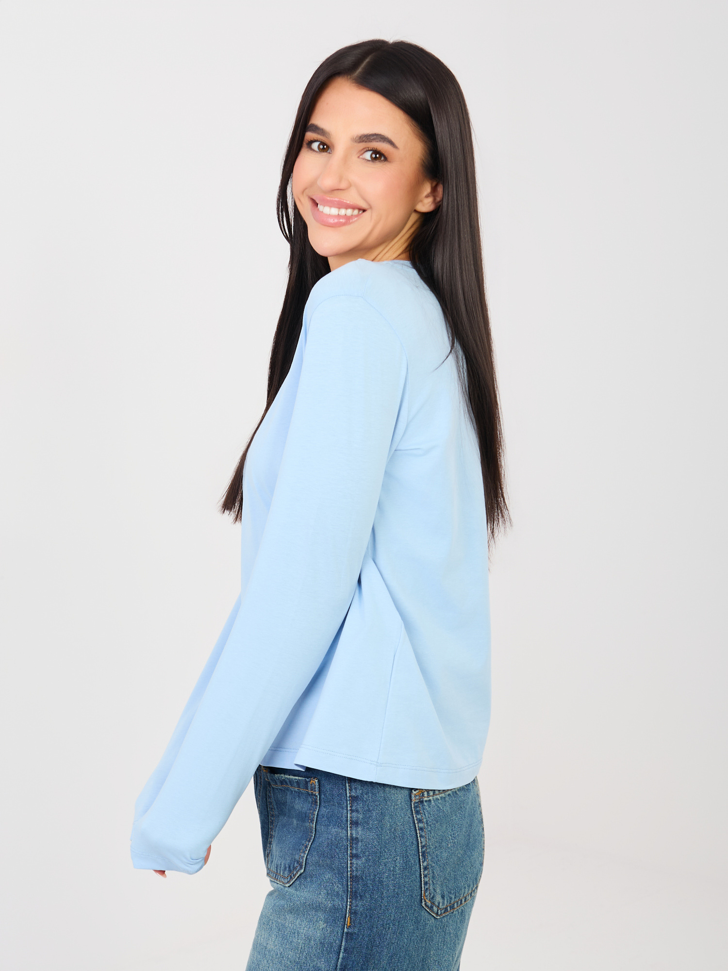 Jasnoniebieska damska bluzka basic z bawełny RUE PARIS .