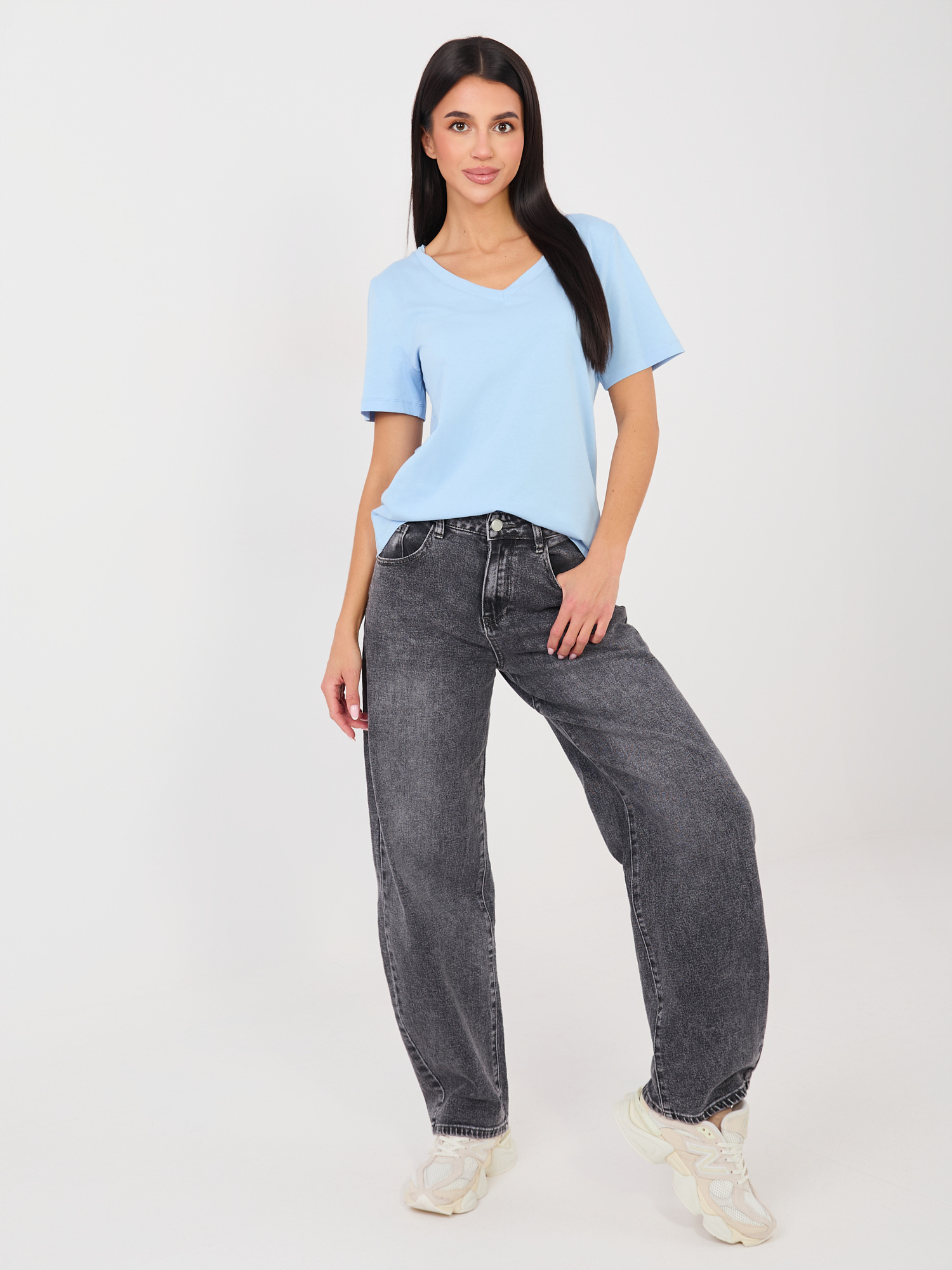 Jasnoniebieski t-shirt basic z dekoltem V RUE PARIS .