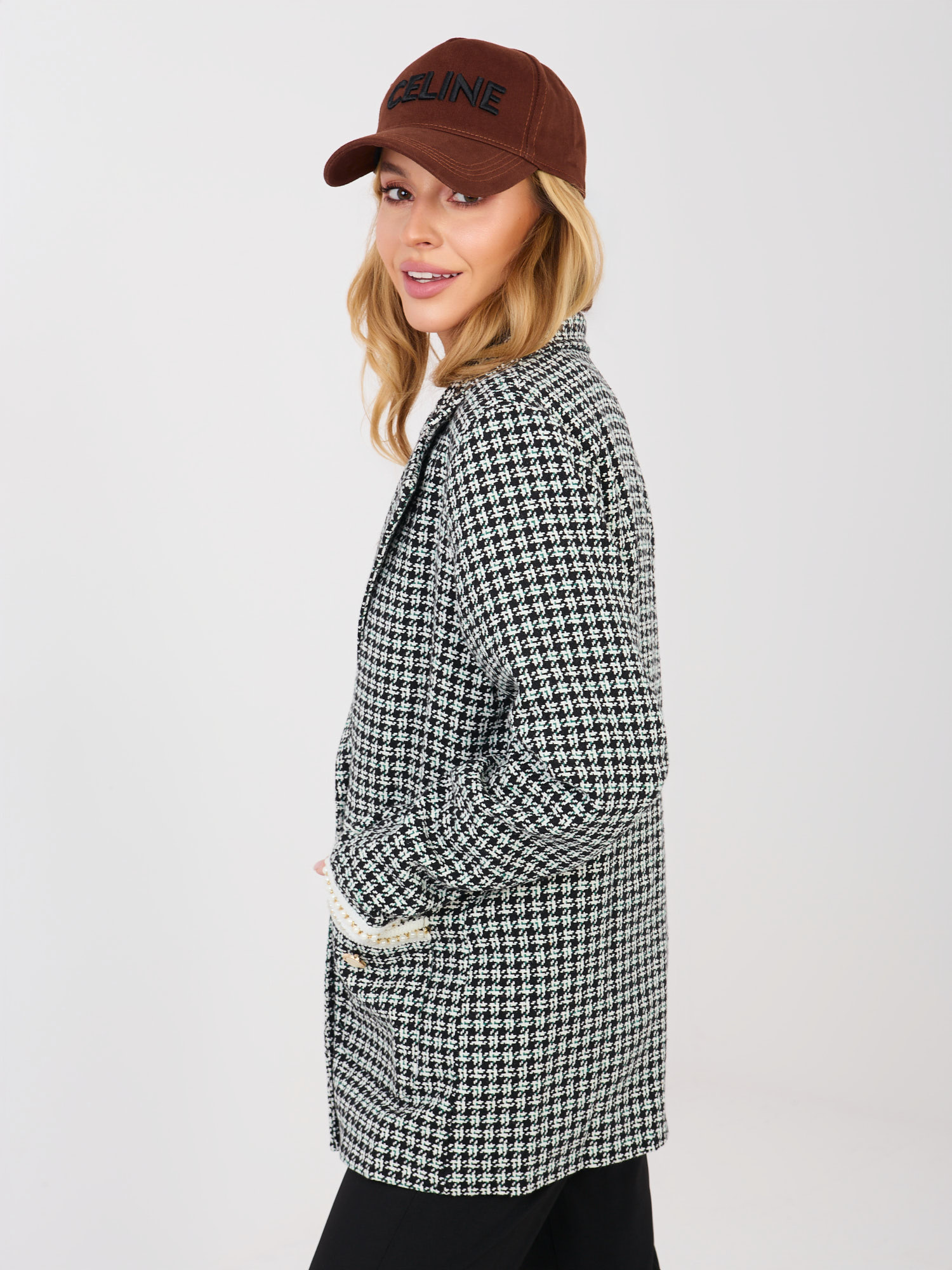 Czarno-zielona dwurzędowa marynarka w kratkę .