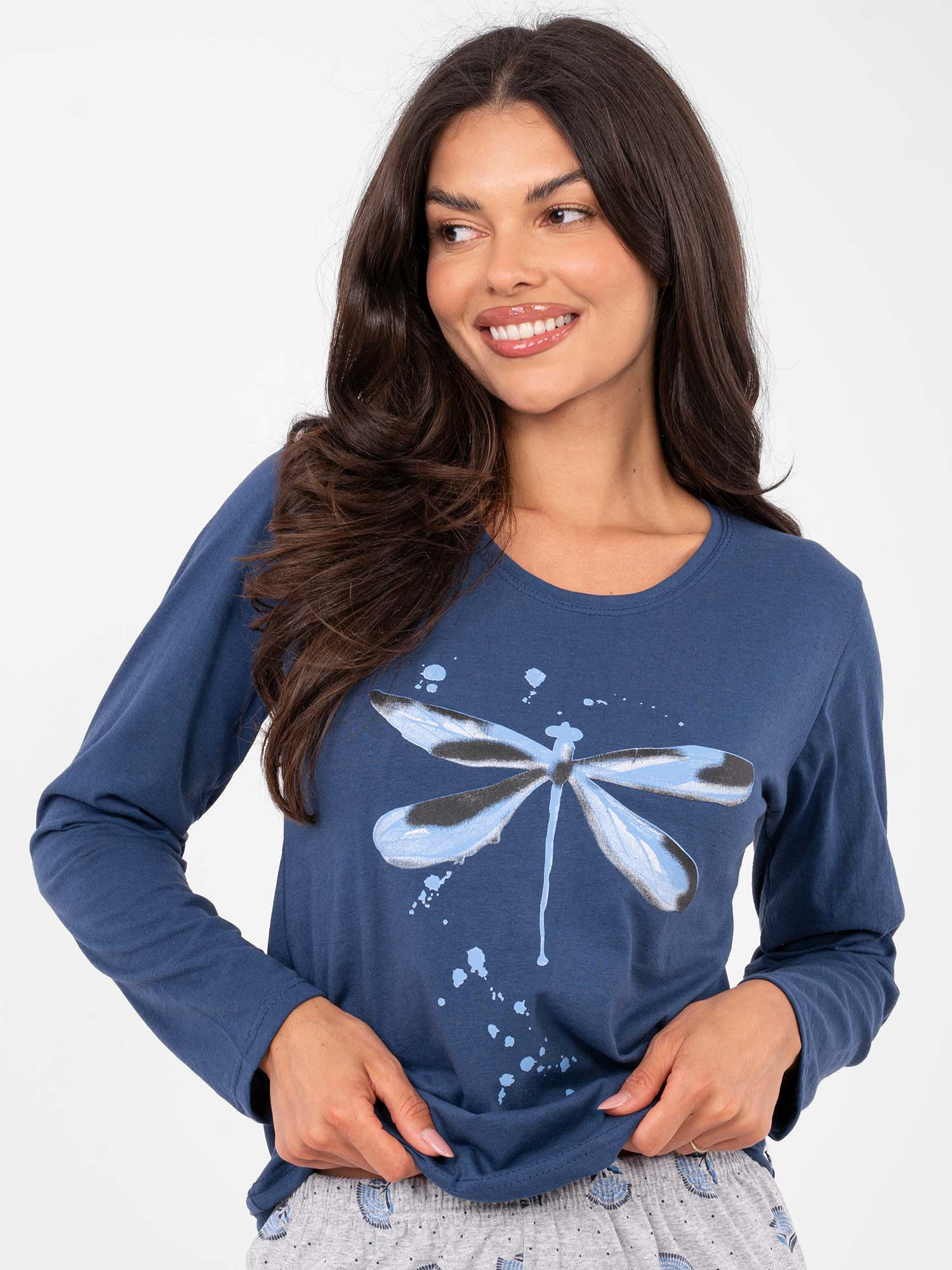 Ciemnoniebieska dwuczęściowa piżama z bawełny