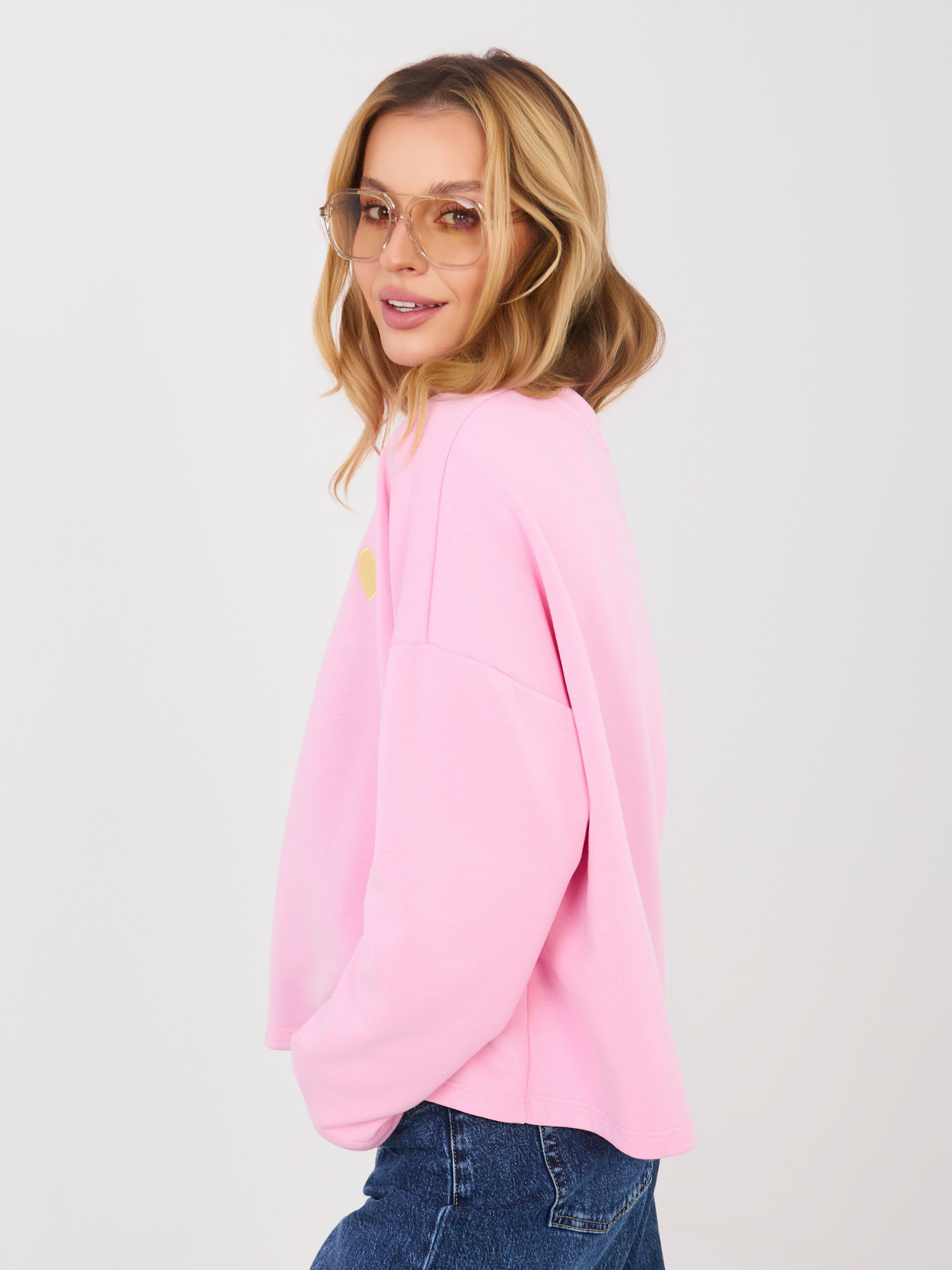 Różowa damska bluza z niewielkim haftem