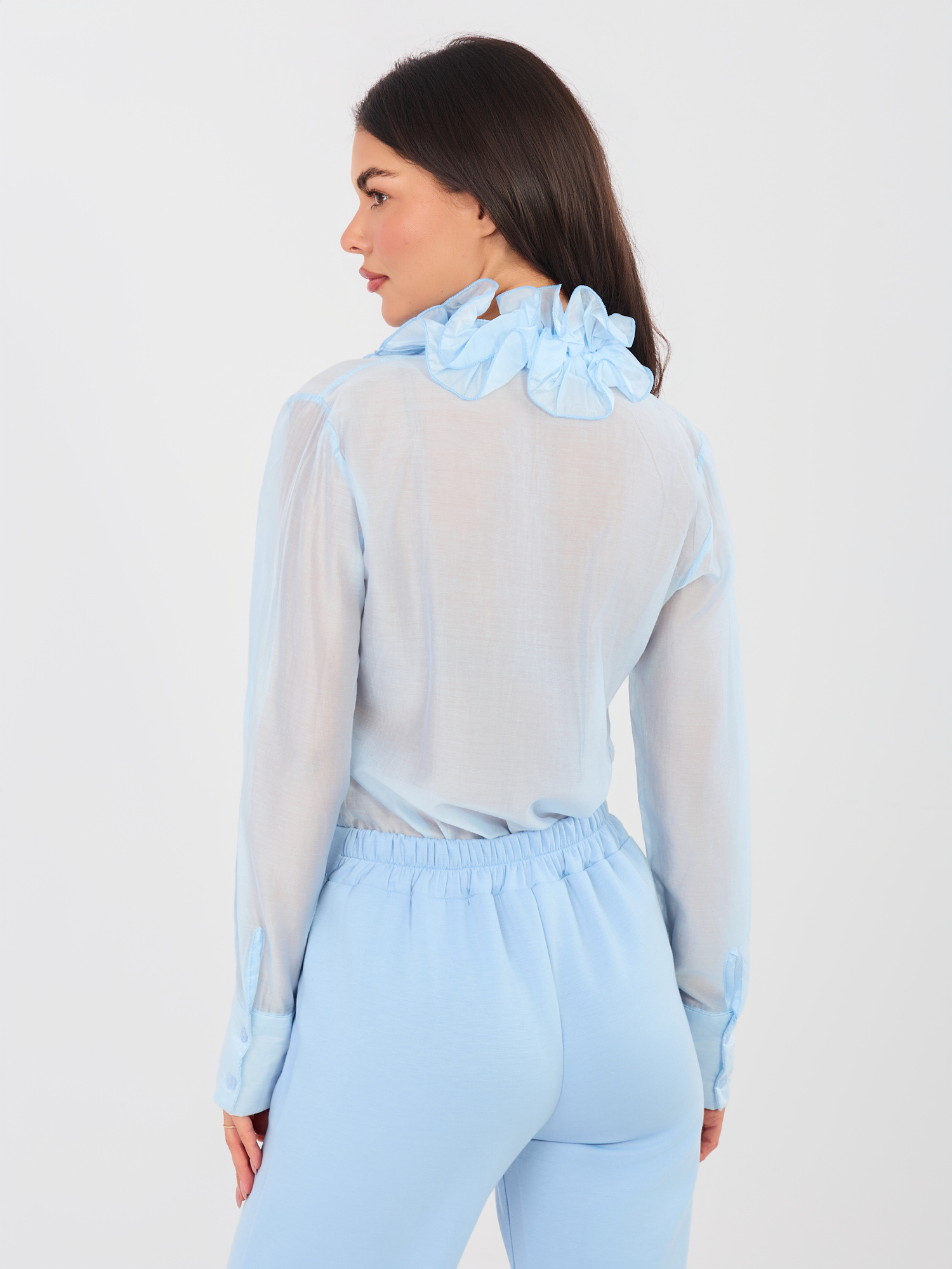 Jasnoniebieska półprzezroczysta koszula z żabotem