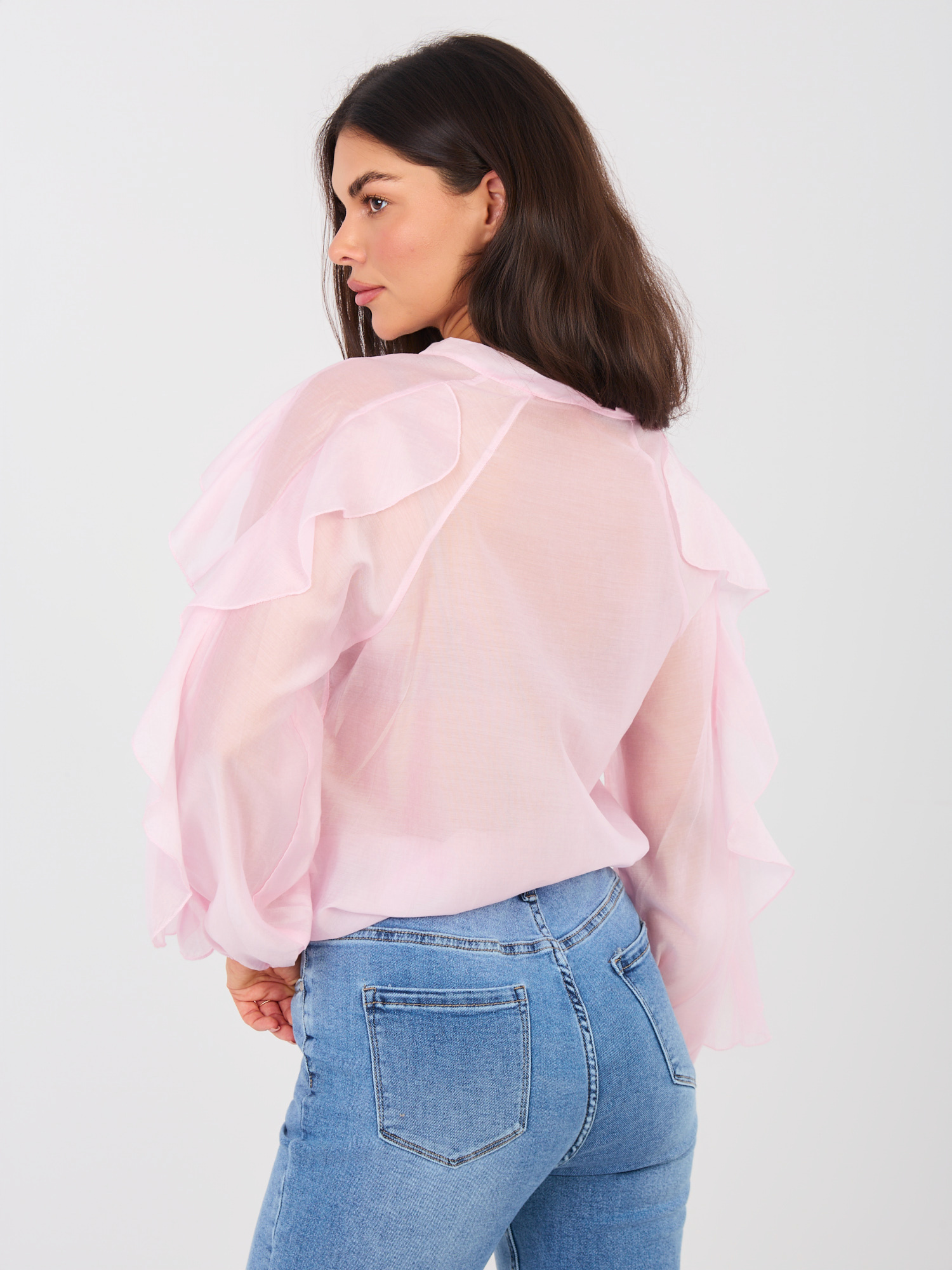 Jasnoróżowa półprzezroczysta koszula z dekoltem V