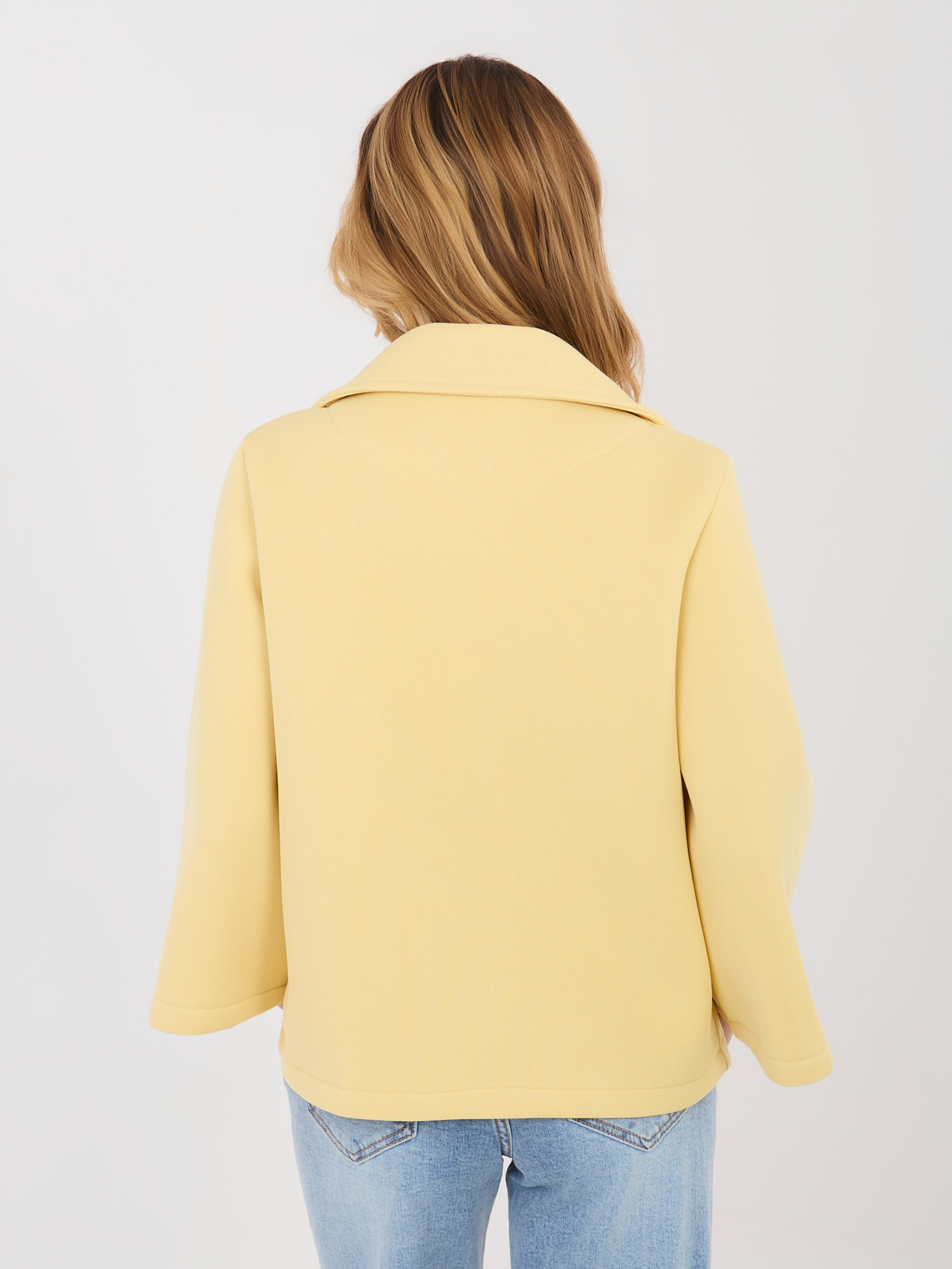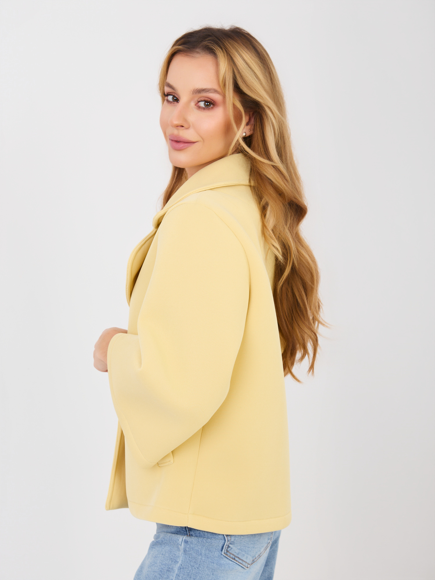 Jasnożółty jednorzędowy płaszcz damski .