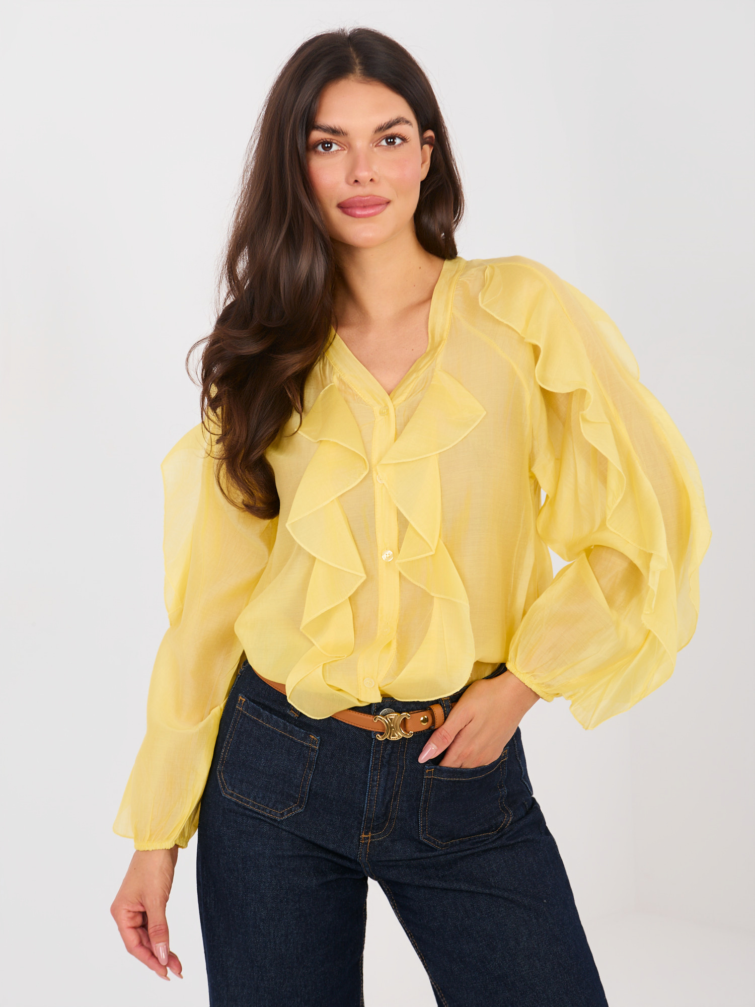 Żółta półprzezroczysta koszula z dekoltem V
