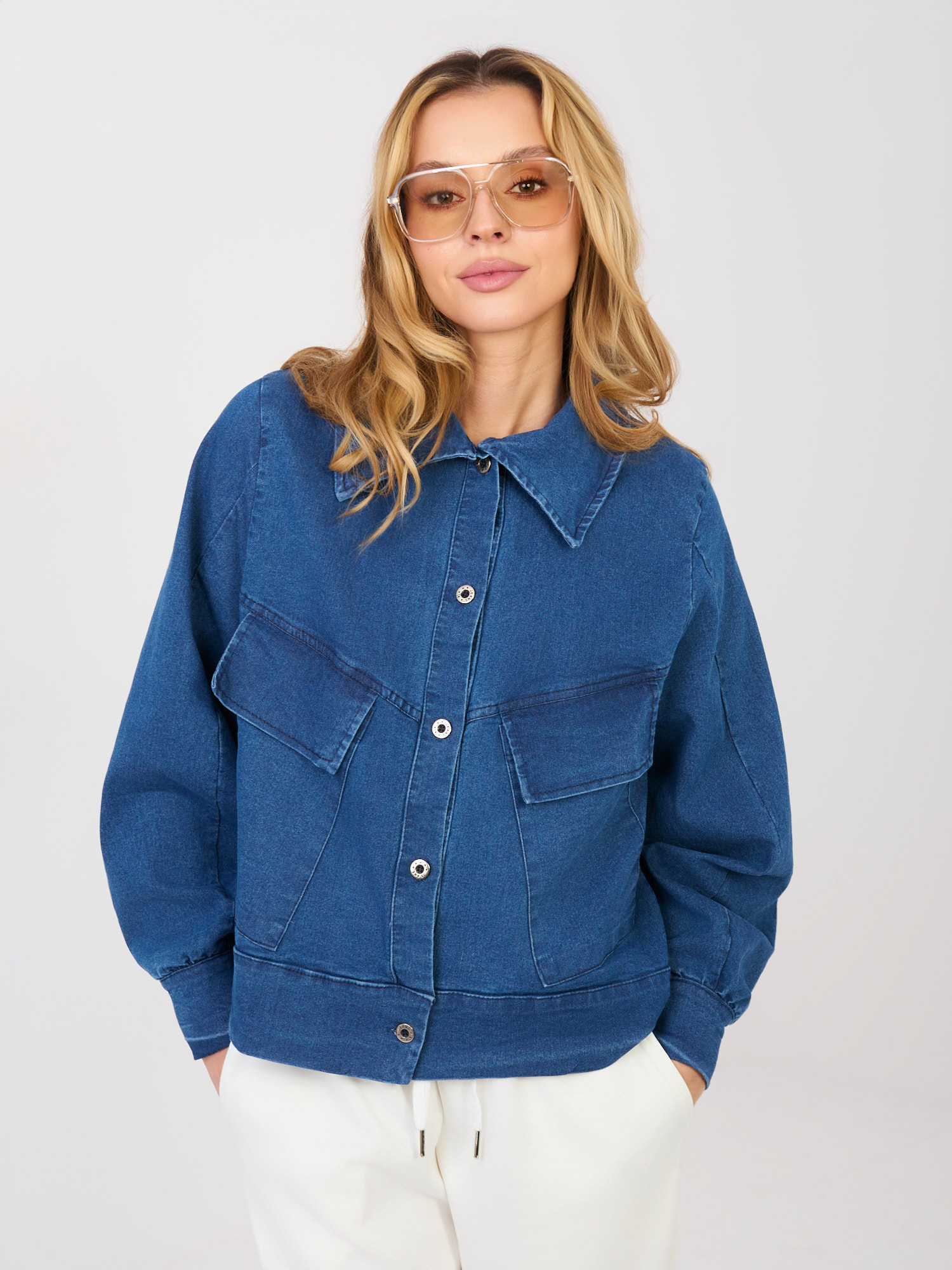 Ciemnoniebieska jeansowa kurtka z kołnierzem RUE PARIS .