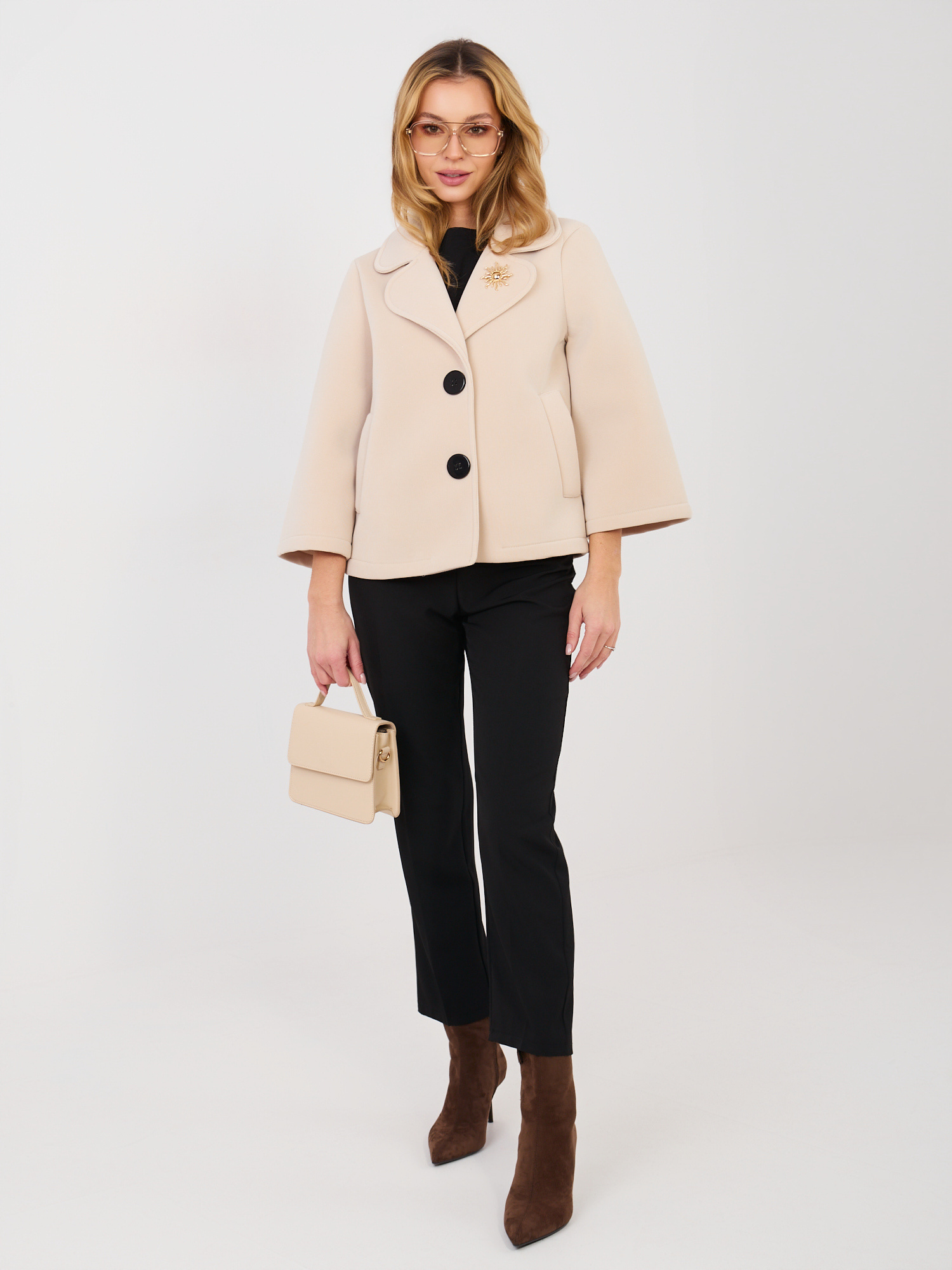 Beżowy płaszcz z zapięciem na guziki
