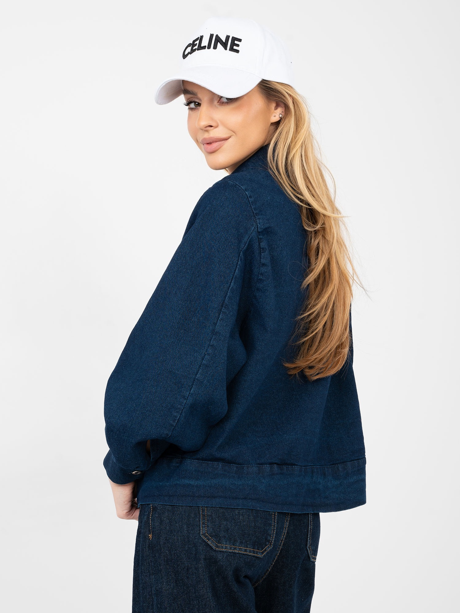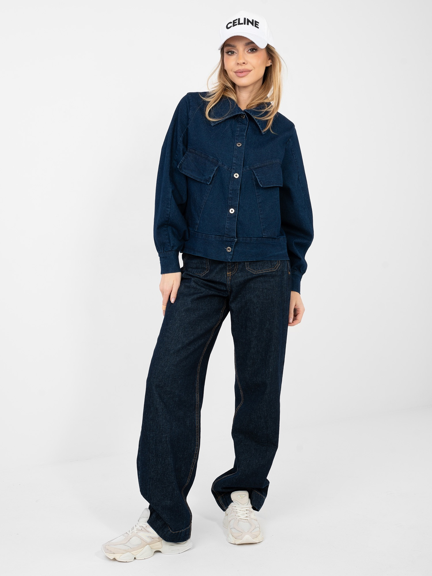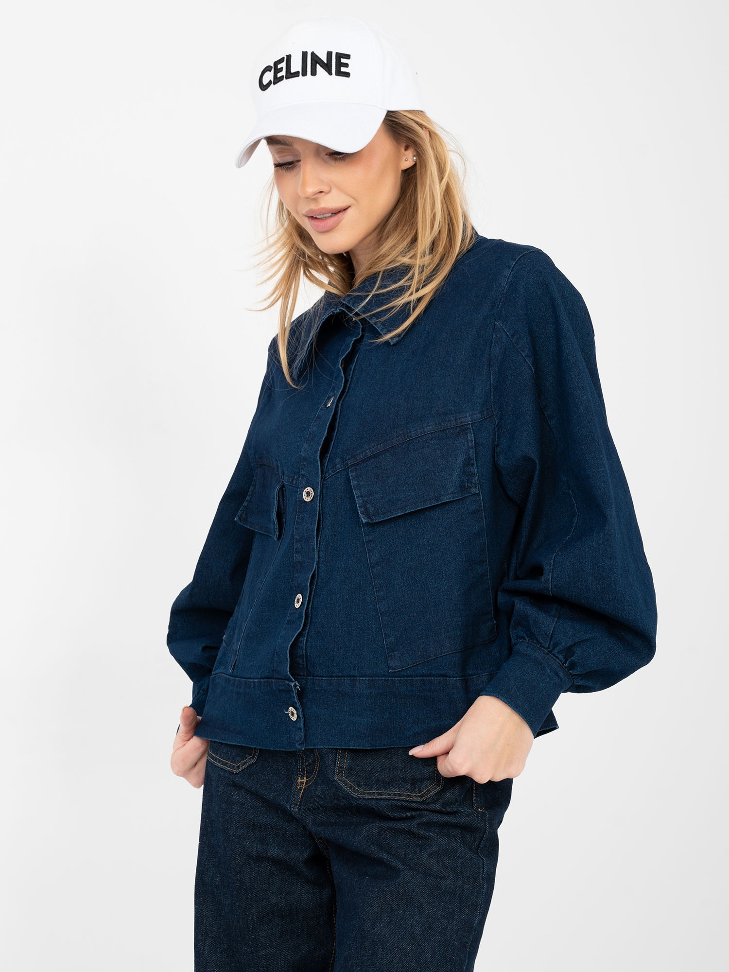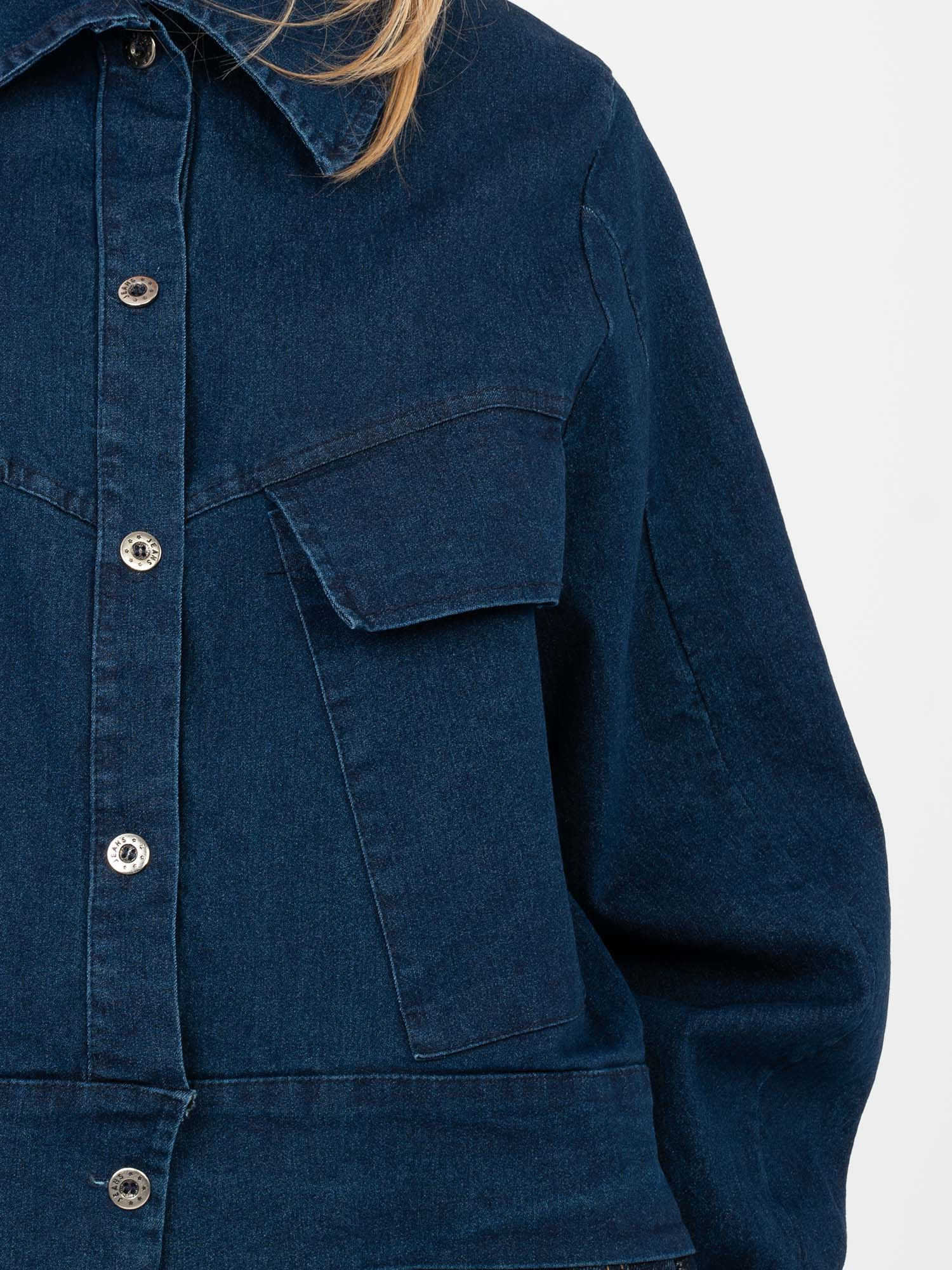 Granatowa jeansowa kurtka z kieszeniami RUE PARIS .
