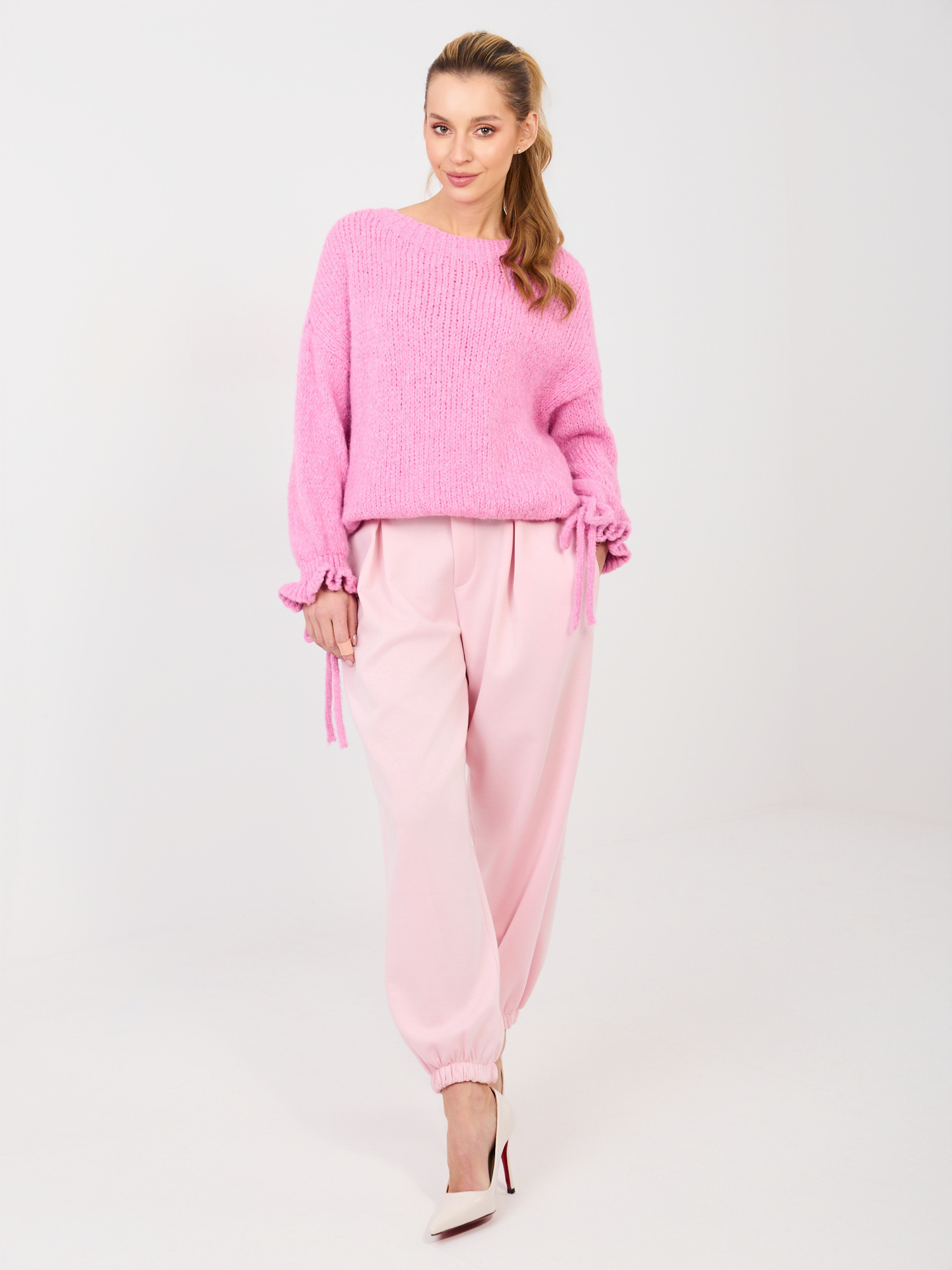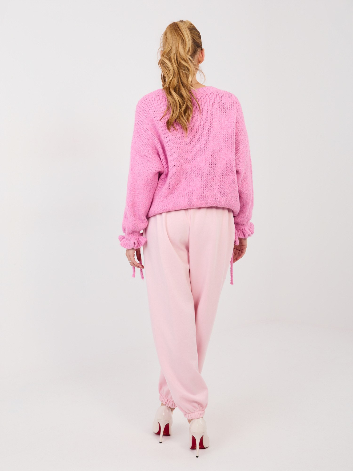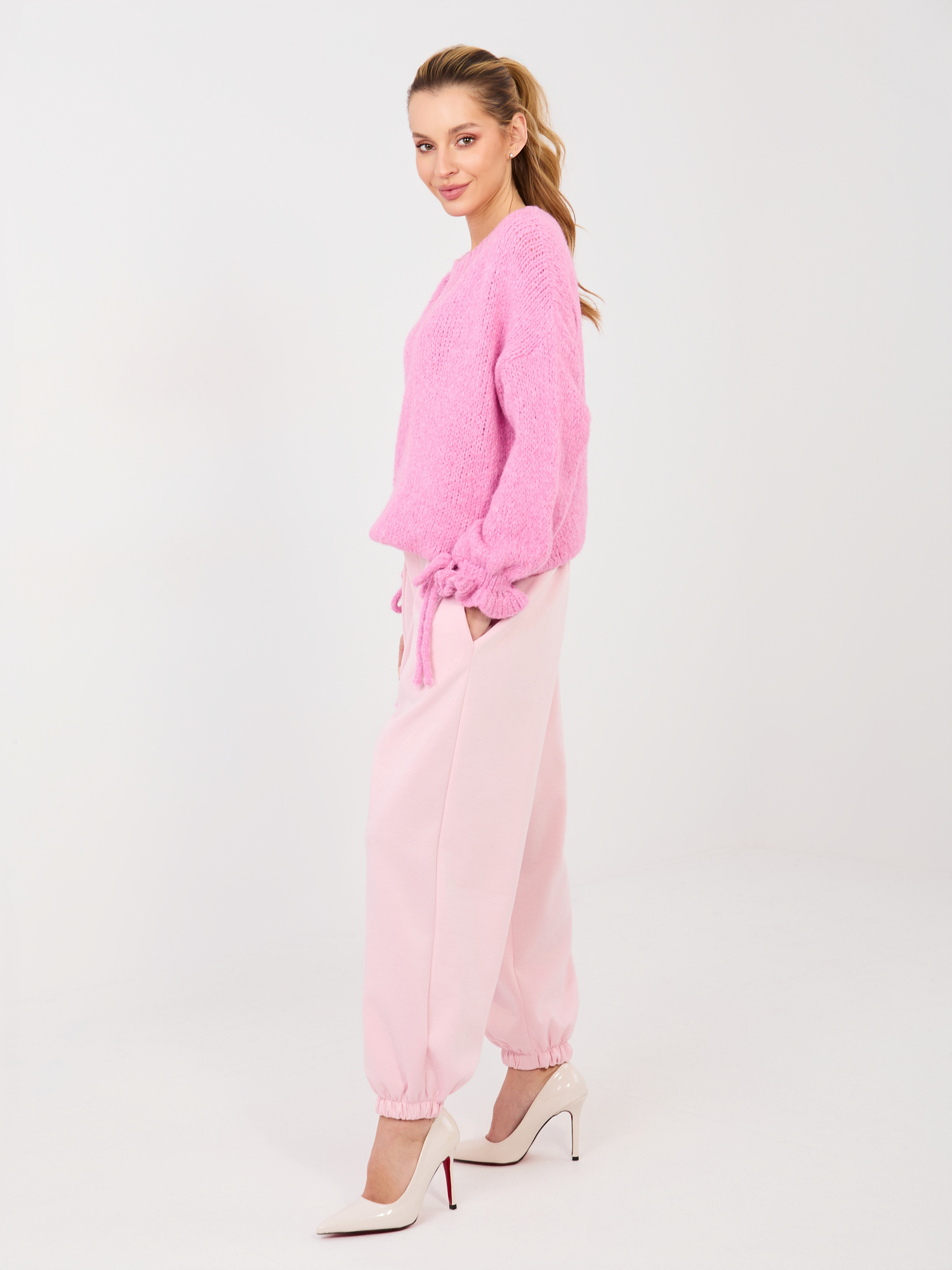 Jasnoróżowe dresowe spodnie ze ściągaczami