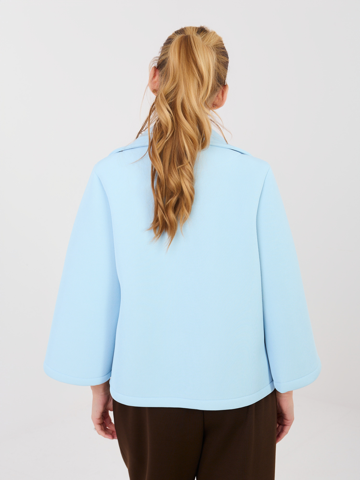 Jasnoniebieski piankowy płaszcz z kołnierzem .