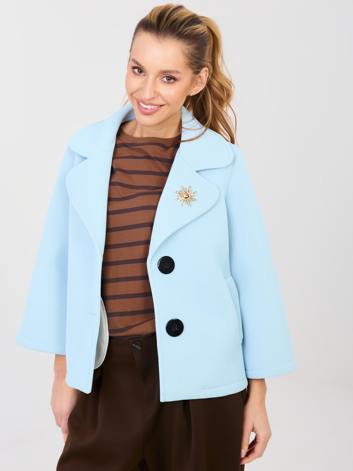 Jasnoniebieski piankowy płaszcz z kołnierzem