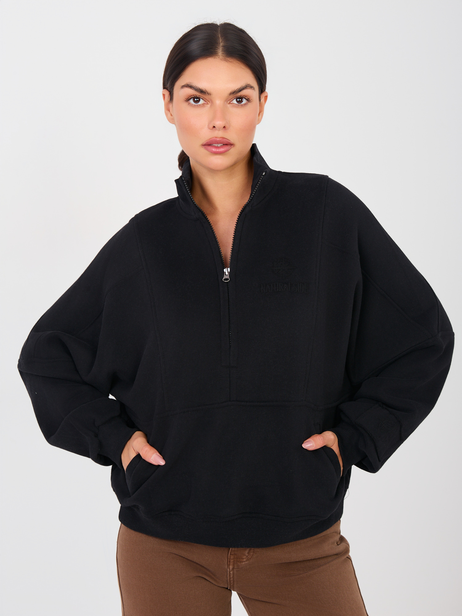 Czarna dresowa bluza ze stójką NATURAL SIDE