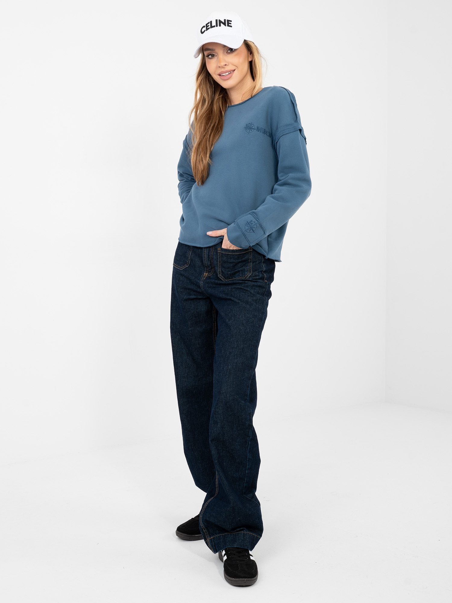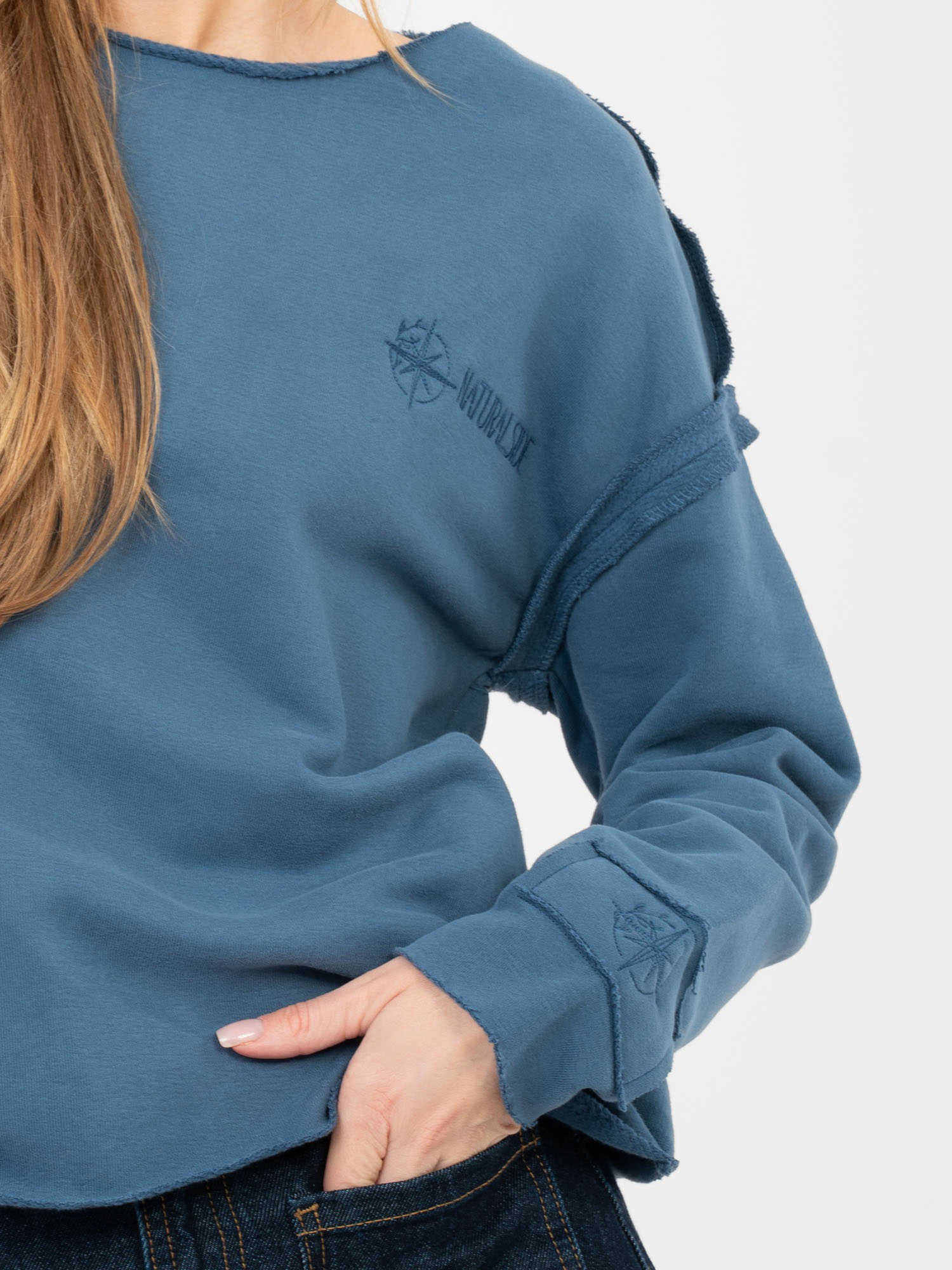 Brudnoniebieska bluza z okrągłym dekoltem NATURAL SIDE .
