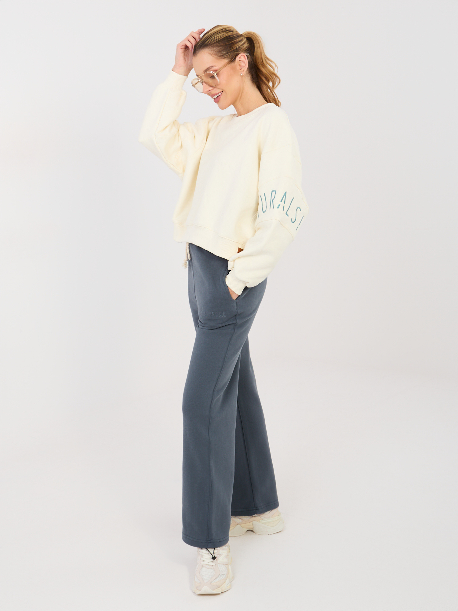 Grafitowe dresowe spodnie z haftem NATURAL SIDE