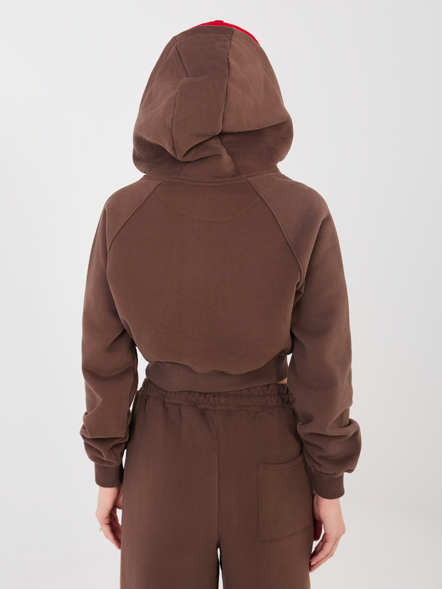 Brązowy dwuczęściowy komplet z krótką bluzą NATURAL SIDE