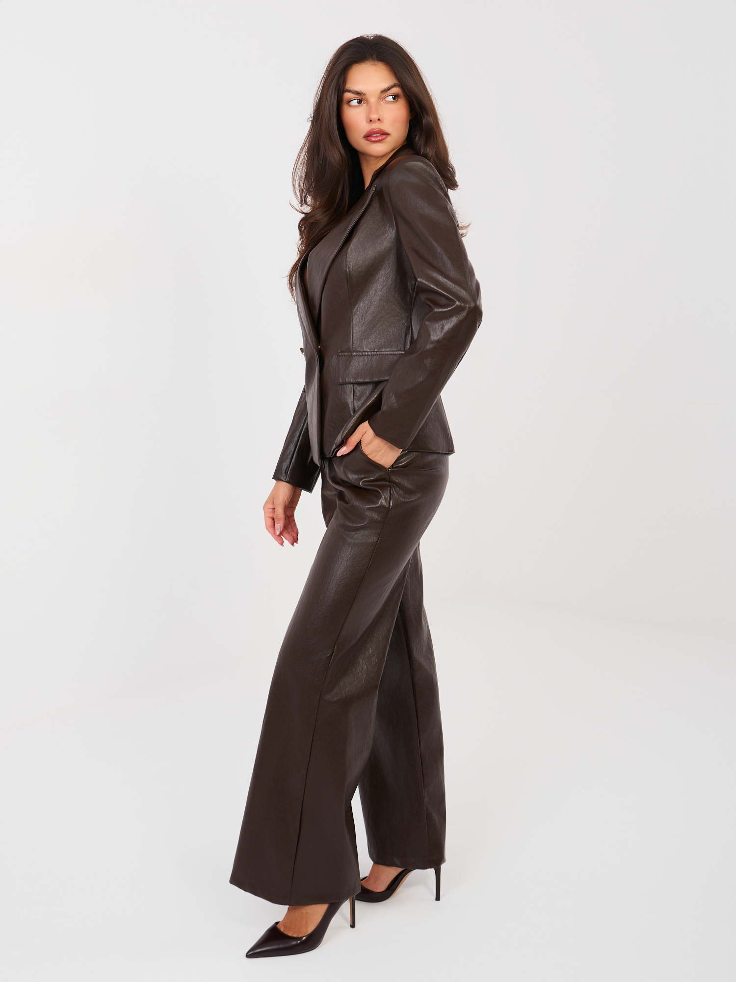 Czekoladowe spodnie z ekoskóry z kieszeniami