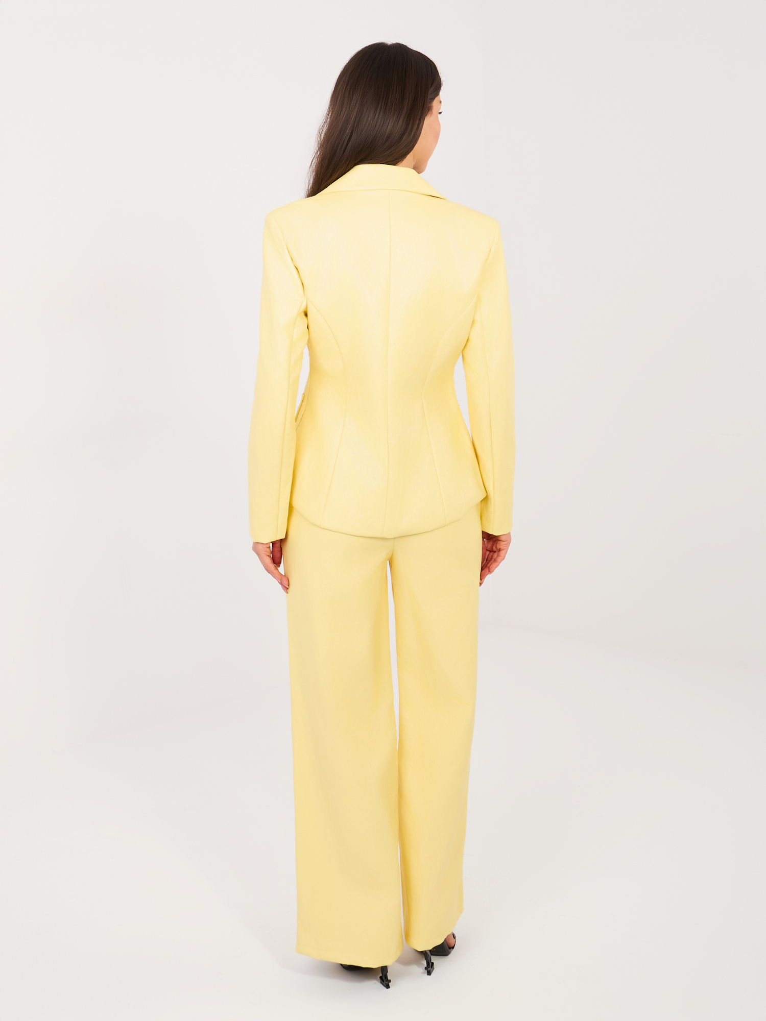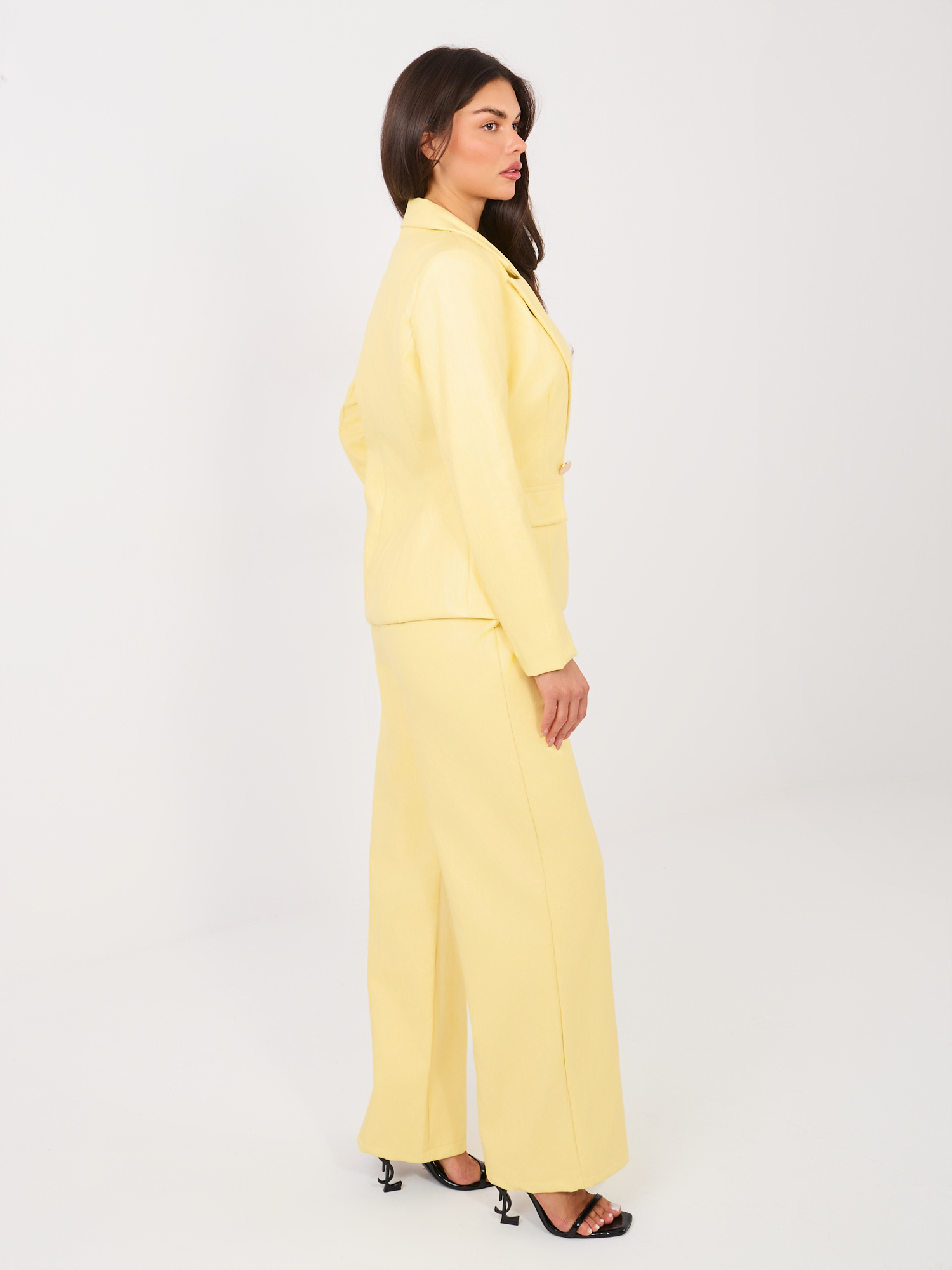 Jasnożółte spodnie z ekoskóry z gumką w pasie