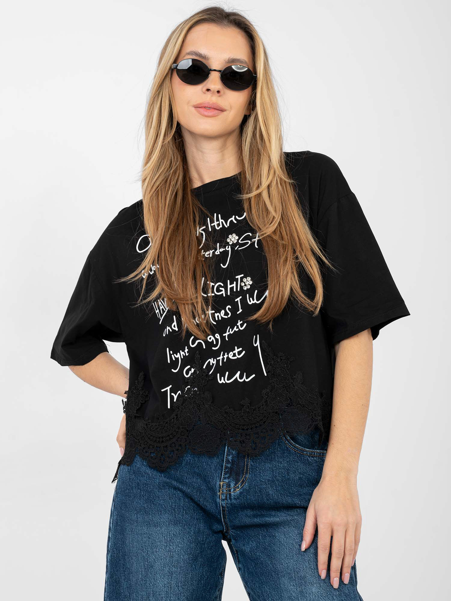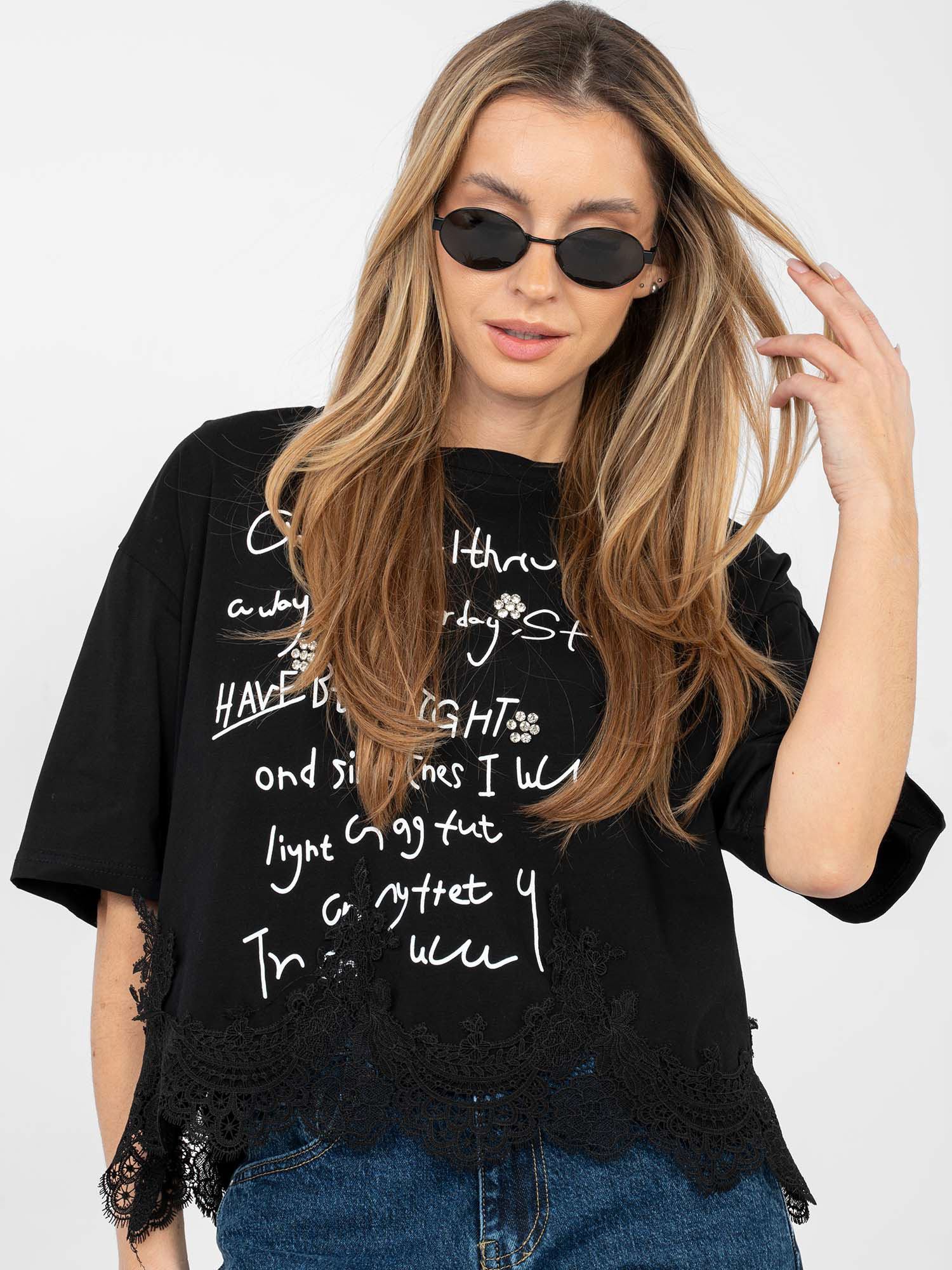 Czarna krótka bluzka z napisami