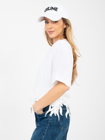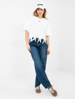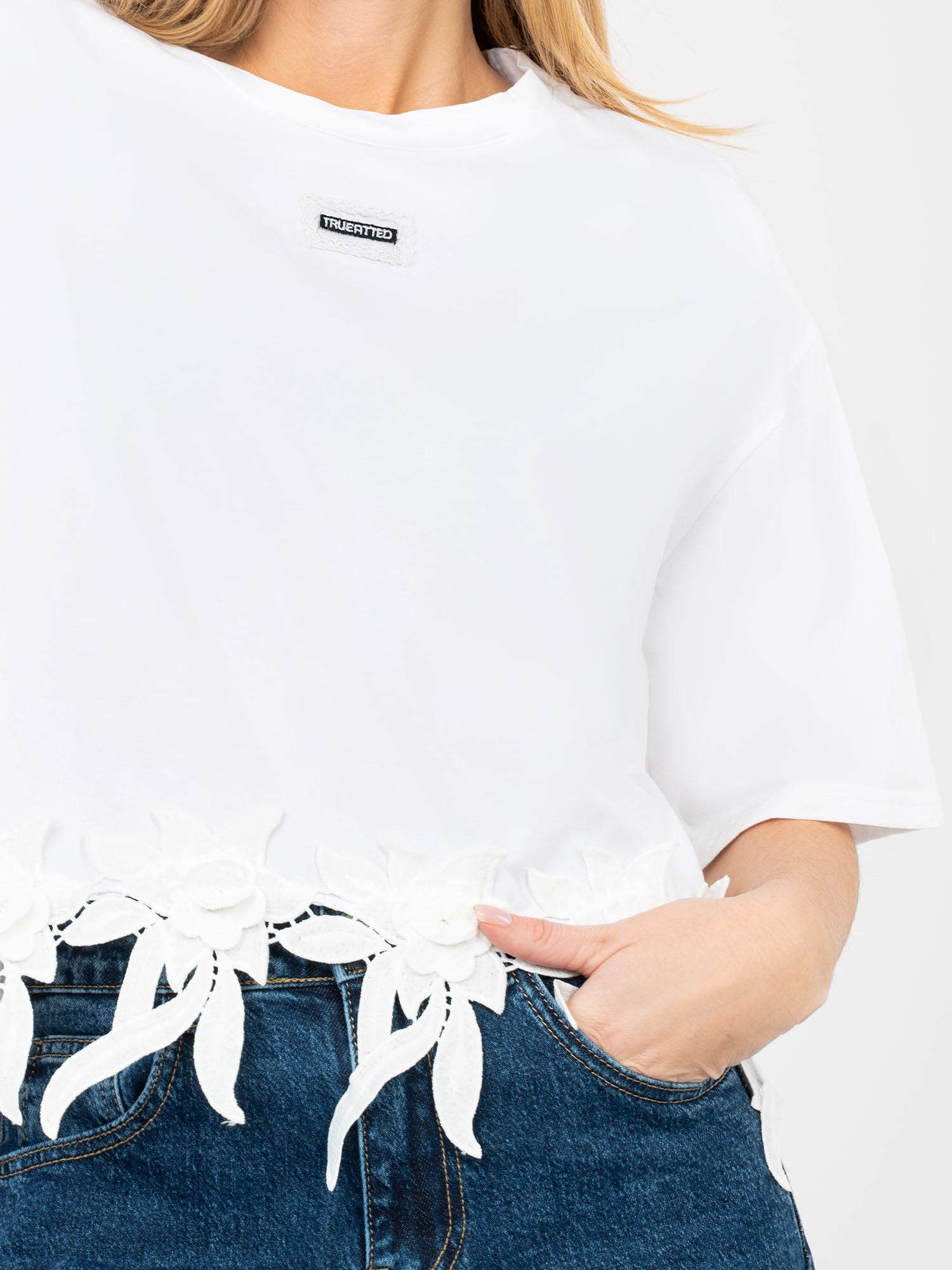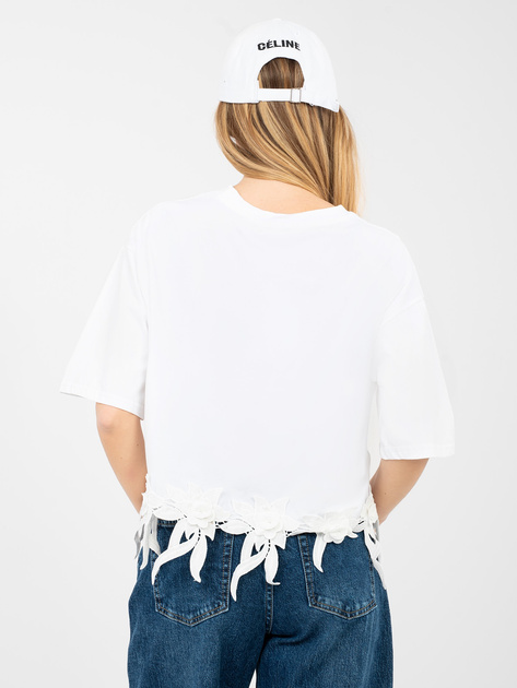 Biała bluzka oversize z kwiatową aplikacją .